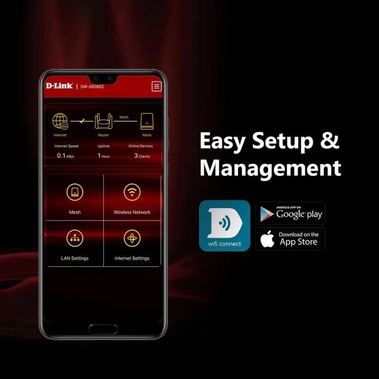 - Support D-Link Wi-Fi Connect Apps for easy management , built in Ookla Speedtest to measure the upload and download speed easily