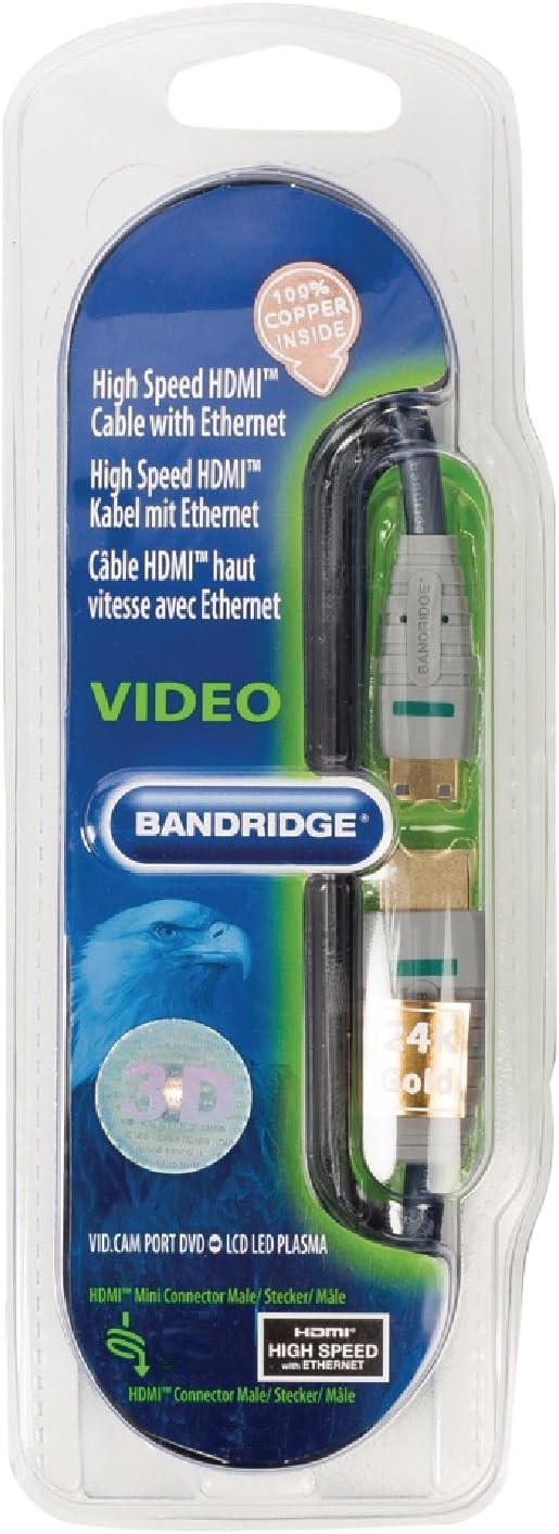 BANDRIGE VIDEO – Mini HDMI to HDMI Cable, High Speed Supports Ethernet 3D and Audio Return 1080P and Audio Return – 3 meters – Gold Plated
