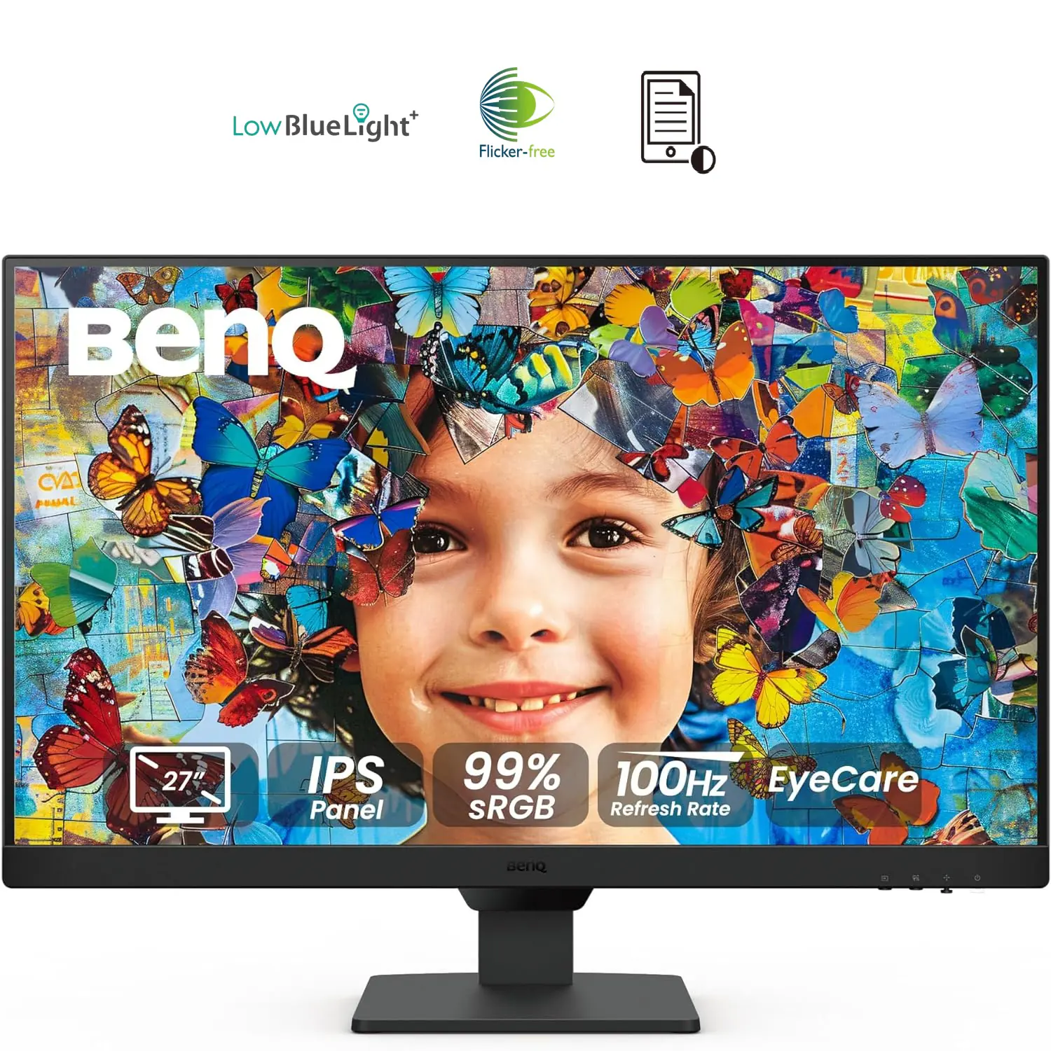 BenQ 27 inch 1080p FHD 100Hz IPS Eye-Care Monitor, 5ms (GtG) , Ultra Slim Bezel, TÜV-Certified, Flicker-Free, Low Blue Light Plus, Eye-CareU , HDMI (v1.4) + DisplayPort (v1.2) + Headphone Jack | GW2791