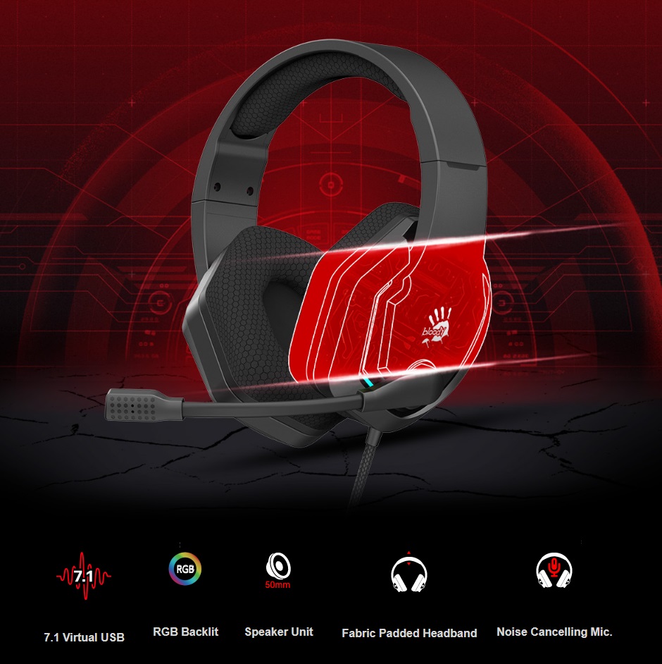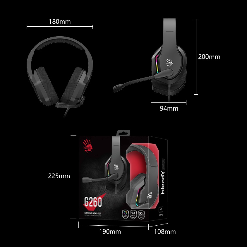 bloody G260 VIRTUAL 7.1 SURROUND SOUND GAMING HEADSET – 50 mm Speaker Unit – RGB Flow Backlight – Noise Cancelling Mic. – In-Line Controller – USB Plug Port – BLACK