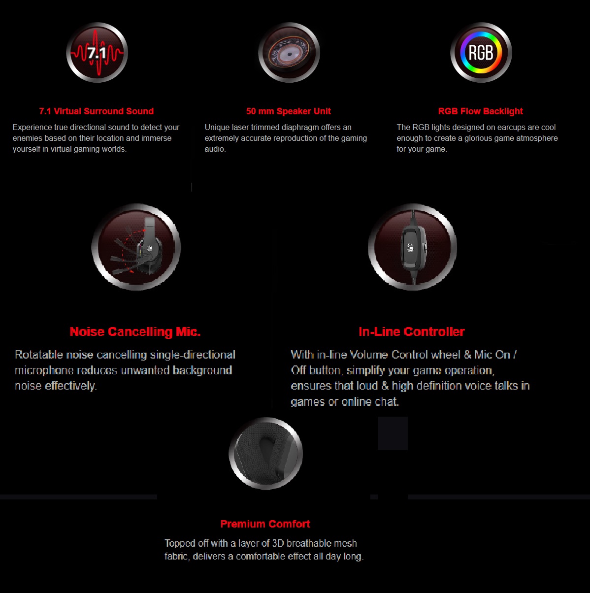 - 7.1 Virtual Surround Sound : Experience true directional sound to detect your enemies based on their location and immerse yourself in virtual gaming worlds.