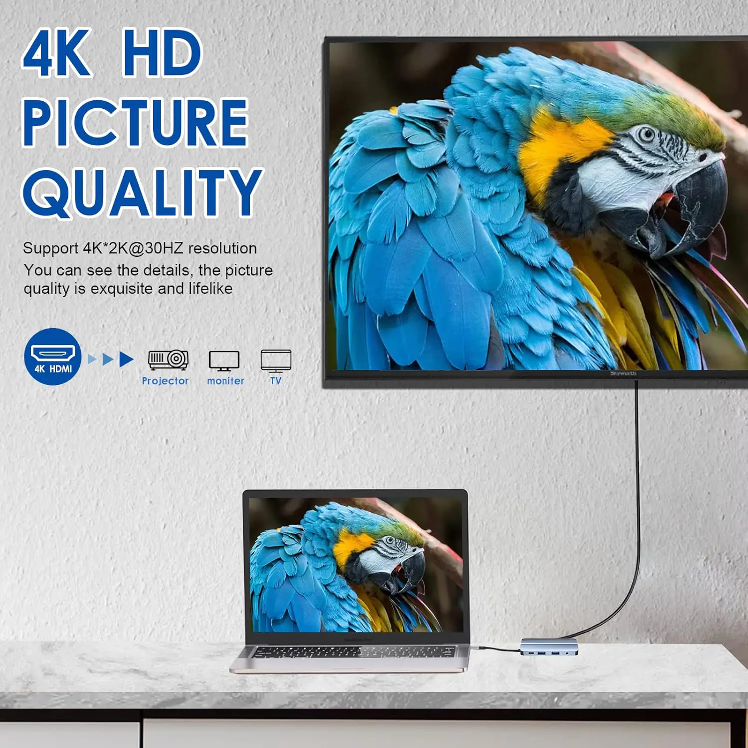- Interface Type: USB-C to HDMI, VGA, PD 100W, USB 3.0, USB 2.0, SD/TF, 3.5mm AUX