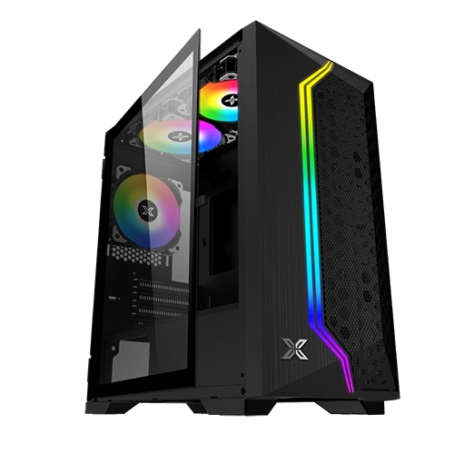 Gemini II (Black, MATX, U3x1+U2x2, Meshed Grill ARGB LED Frontpanel & Left TG, 3PCS X24F Fixed RGB Fan)