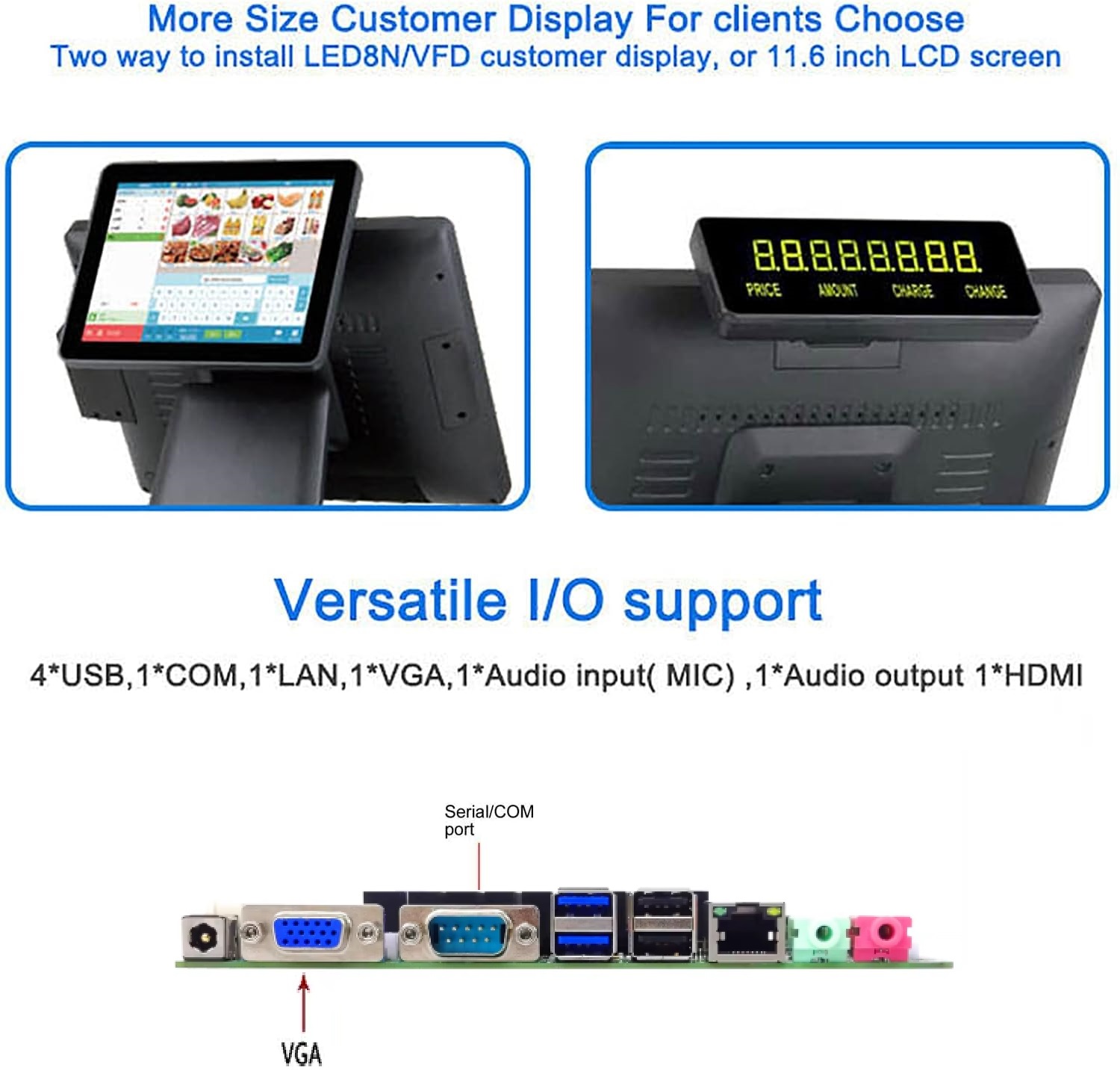 GSAN T3 Retail ALL in One POS Terminal Machine for Business, Point of Sale Cash Register with Intel Core I5 – 5th Gen , 8GB Memory, and 128GB SSD , 15.6″ Dual Touch Screen + LED8N 11 Digit Customer Display – Wifi Connectivity – 4 USB , VGA , Serial Com , RJ45 Ports – BLACK
