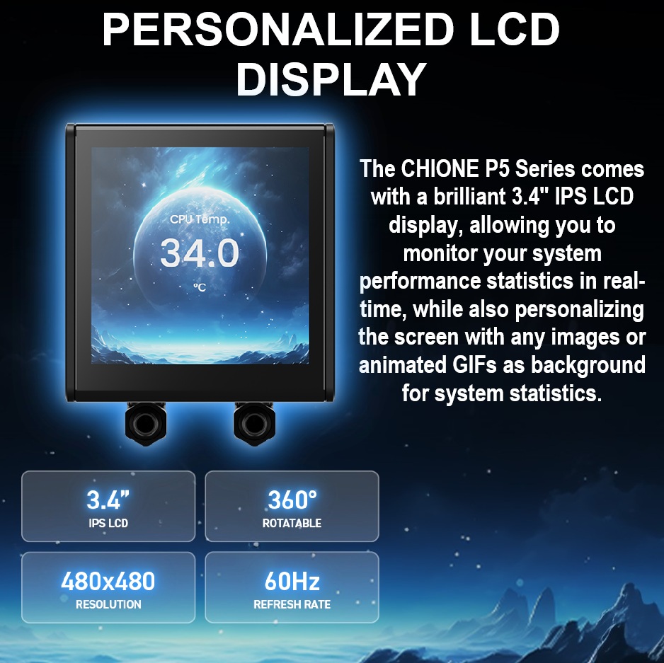 - 3.4” IPS LCD Display – Customize with real-time system stats, images, or animated GIFs.