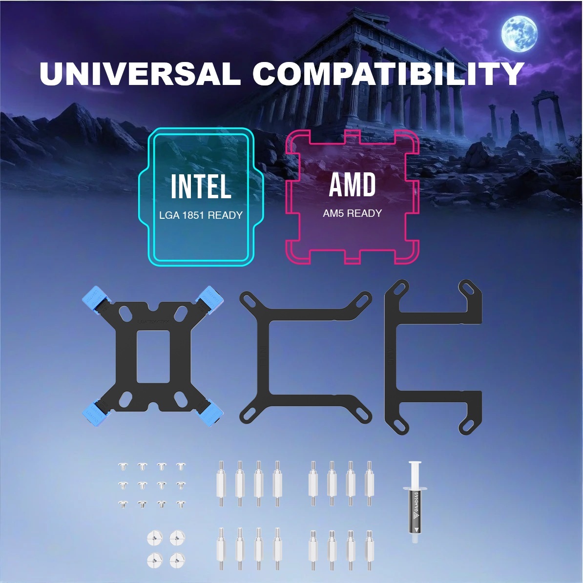- Universal Mounting Kit – Supports Intel LGA 1851 / 1700 / 1200 / 1151 and AMD AM5 / AM4 sockets.