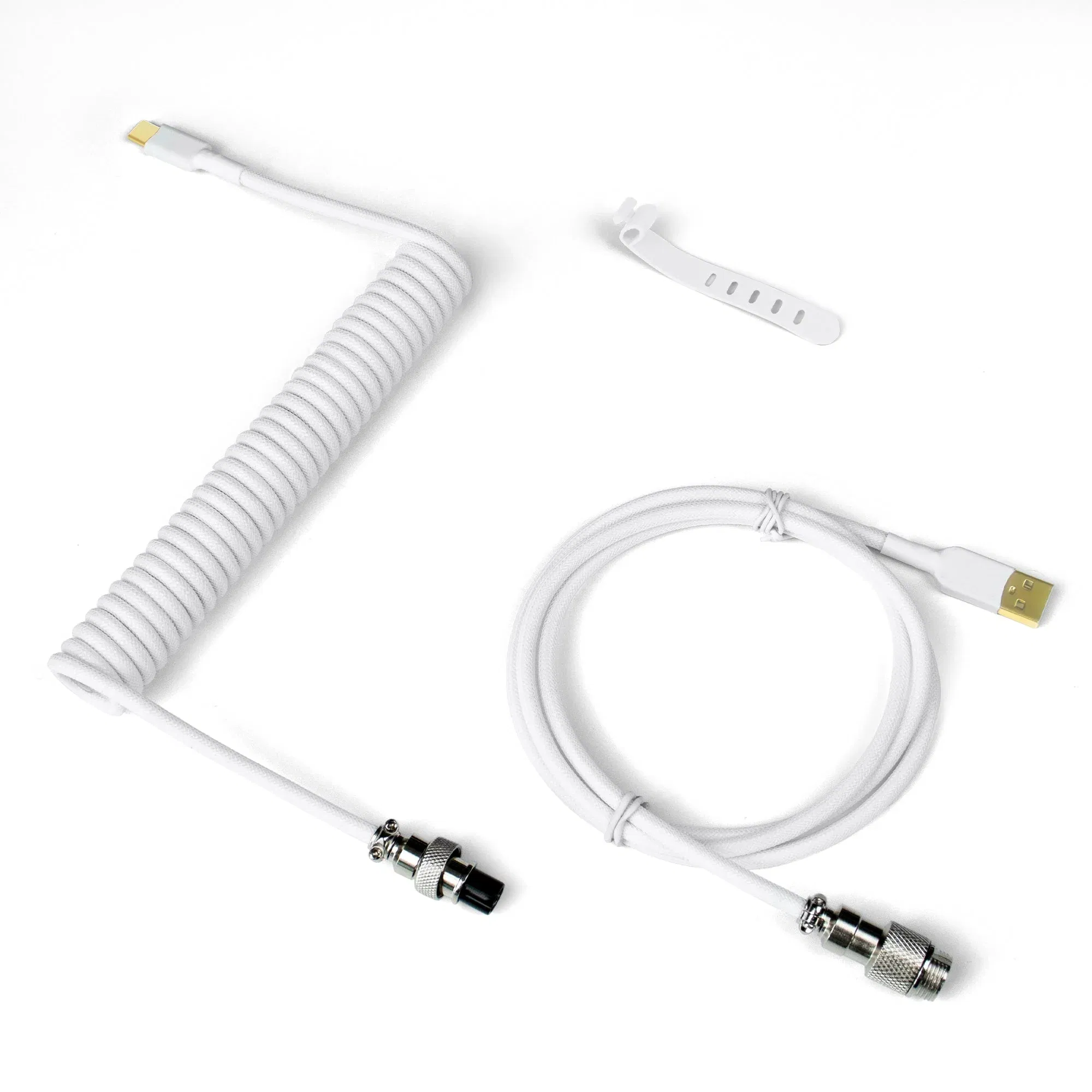 Coiled Keyboard Cable Type-A to Type-C White | Detachable Aviator Connector, Braided Nylon, High-Speed USB-C, Durable, Tangle-Free, Ideal for Mechanical Keyboards