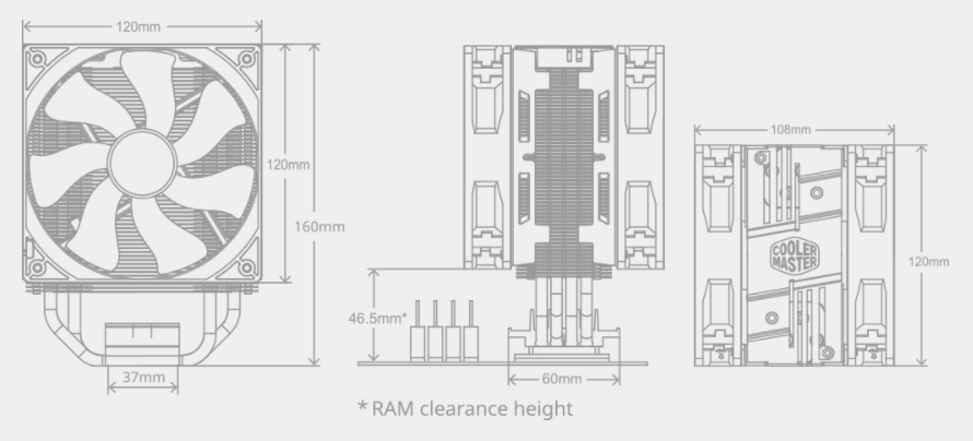 Heatsink Dimensions 120 x 108 x 160 mm / 4.7 x 4.3 x 6.3 inch
