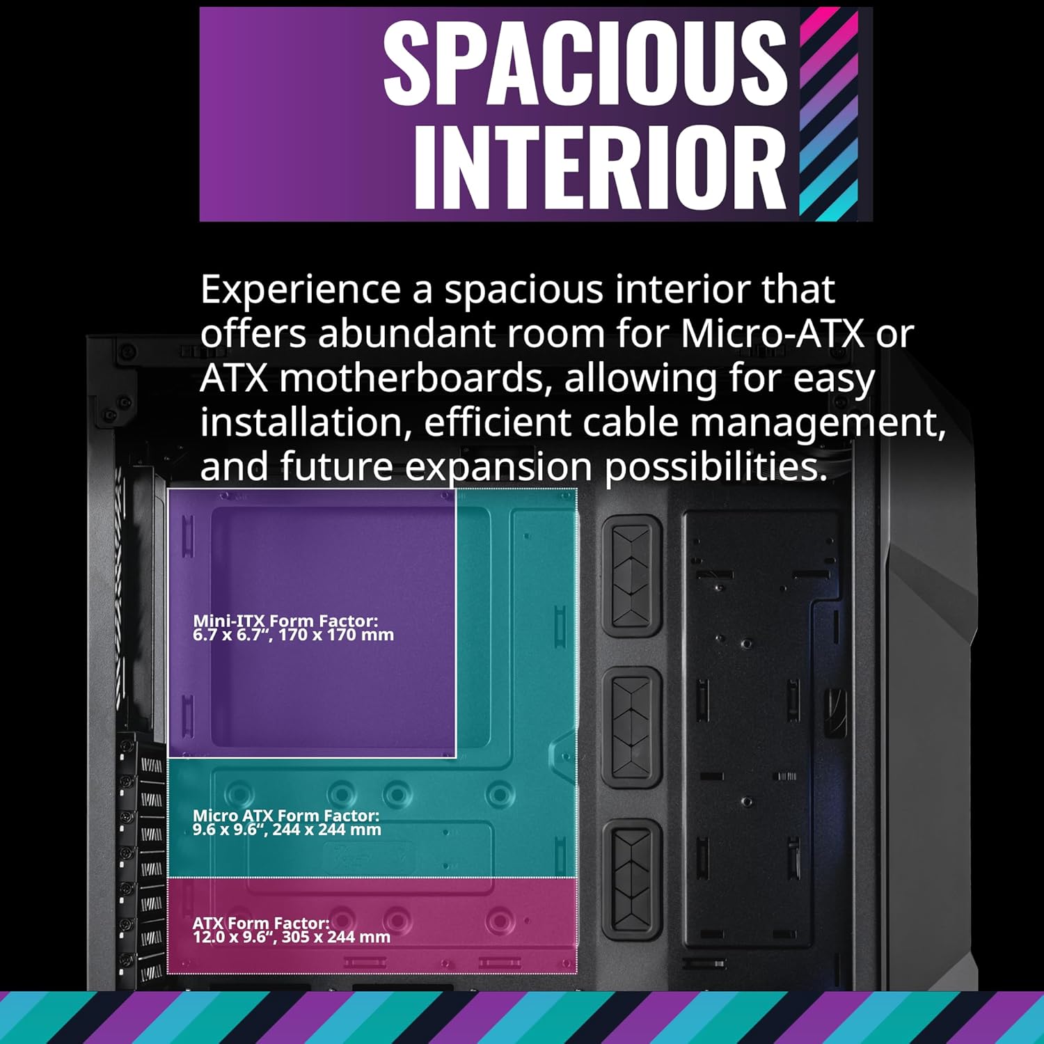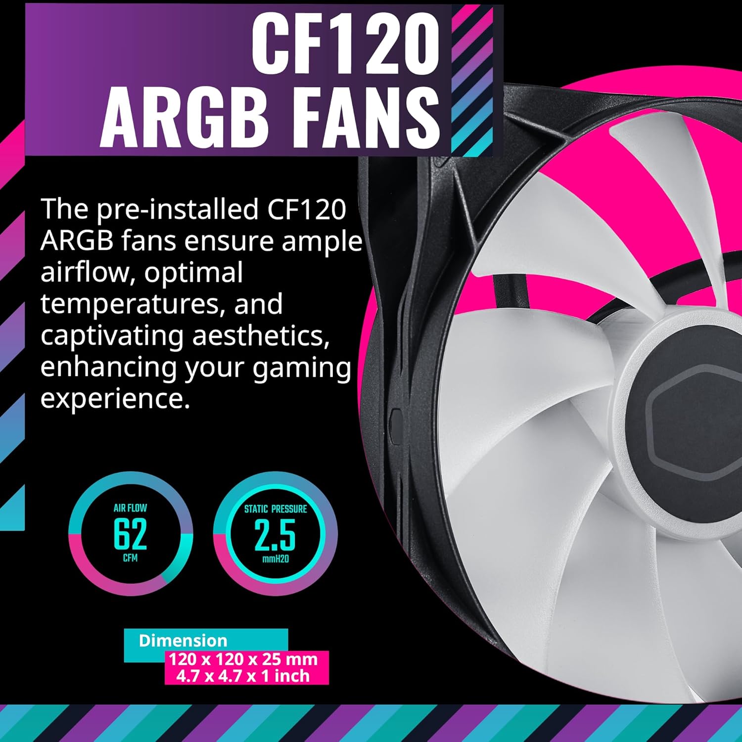 - Pre-Installed CF120 ARGB Fans : Includes three 120mm CF120 ARGB fans at the front to provide balanced airflow, vivid lighting, and thermal efficiency