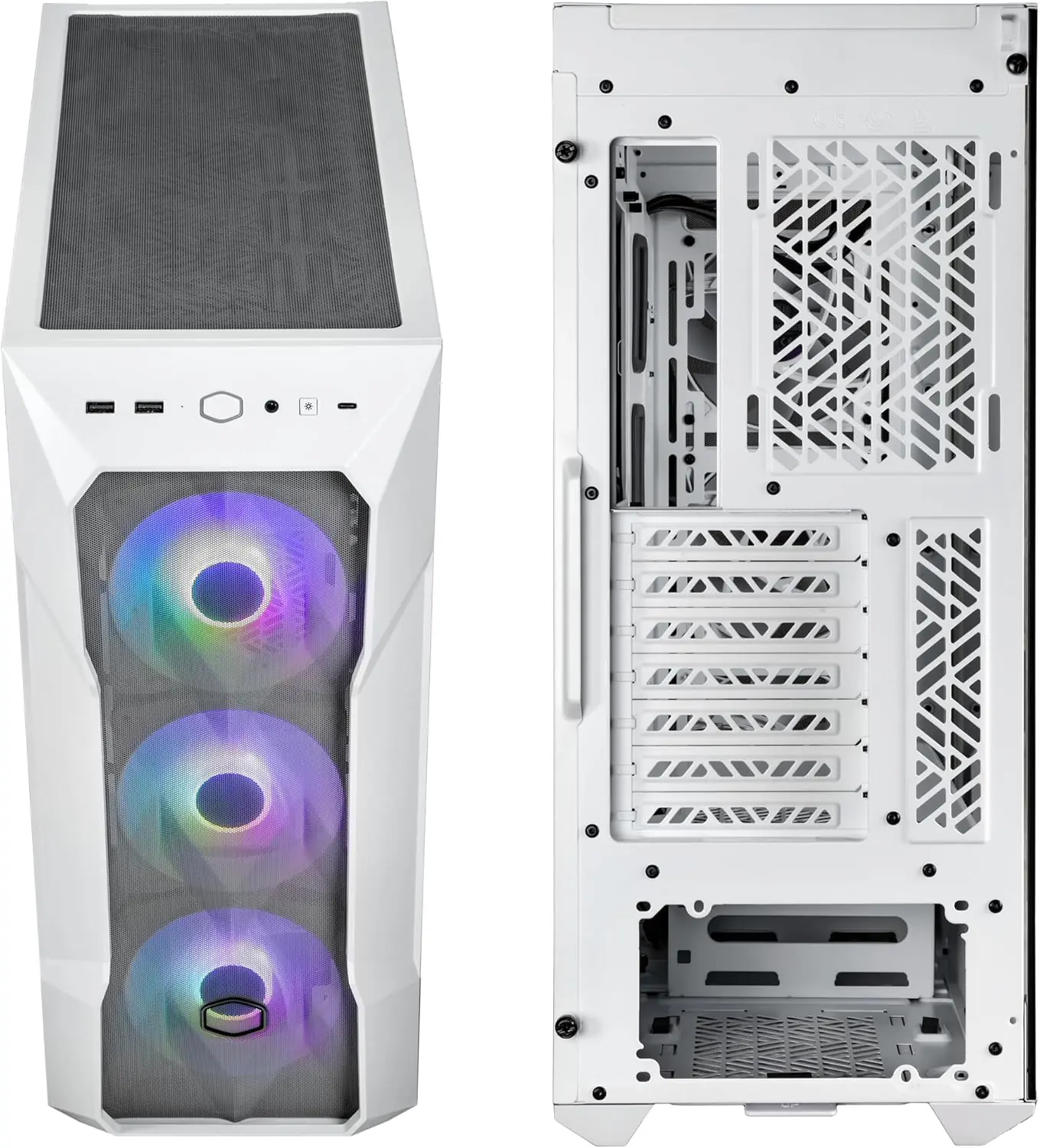 Cooler Master TD500 Mesh V2 White Airflow Mid-Tower Case, Polygonal FineMesh, Crystalline Tool-Free Glass, 3x ARGB Fans, Removable Top, USB 3.2 Gen 2 Type-C | WHITE TD500V2-WGNN-S00