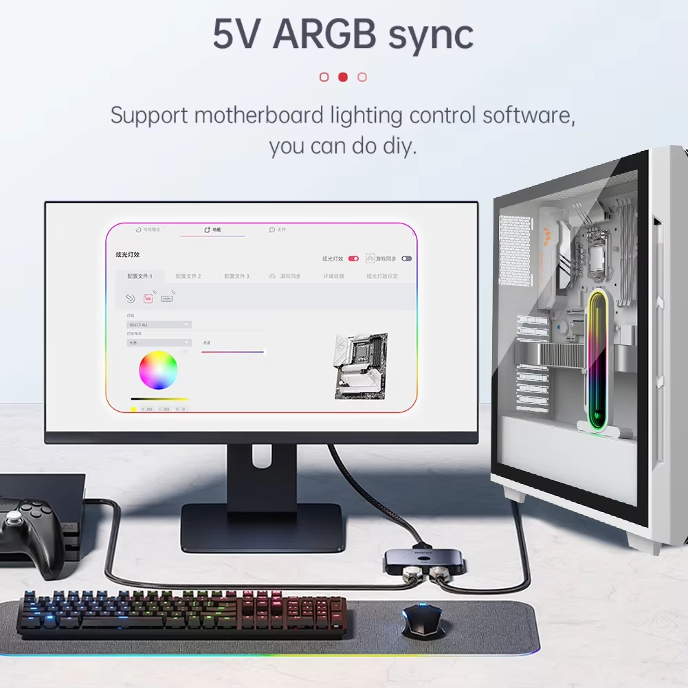 • 5V Addressable ARGB Synchronization : Supports motherboard-controlled 5V 3-Pin ARGB sync with ASUS, MSI, and other major platforms for fully programmable lighting.
