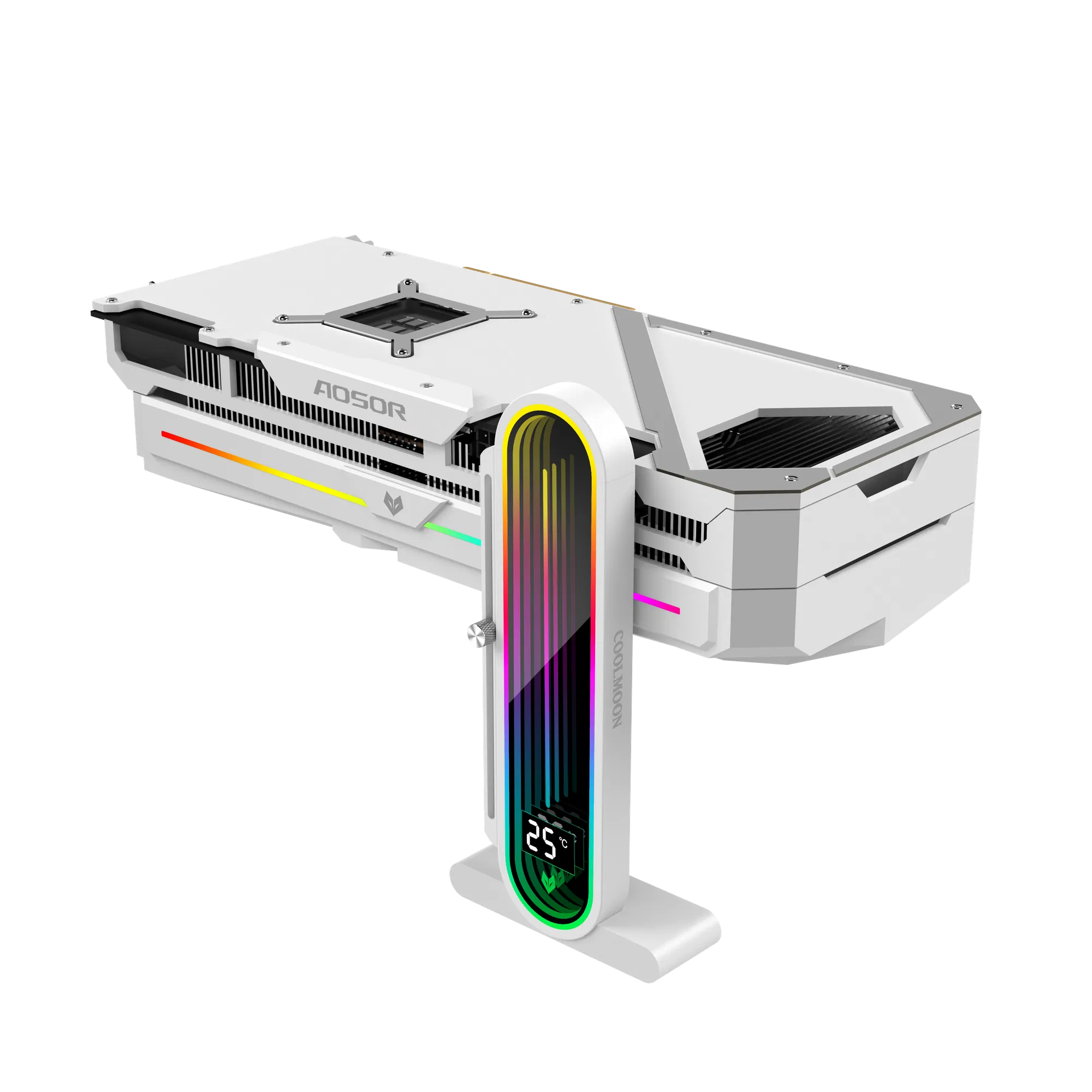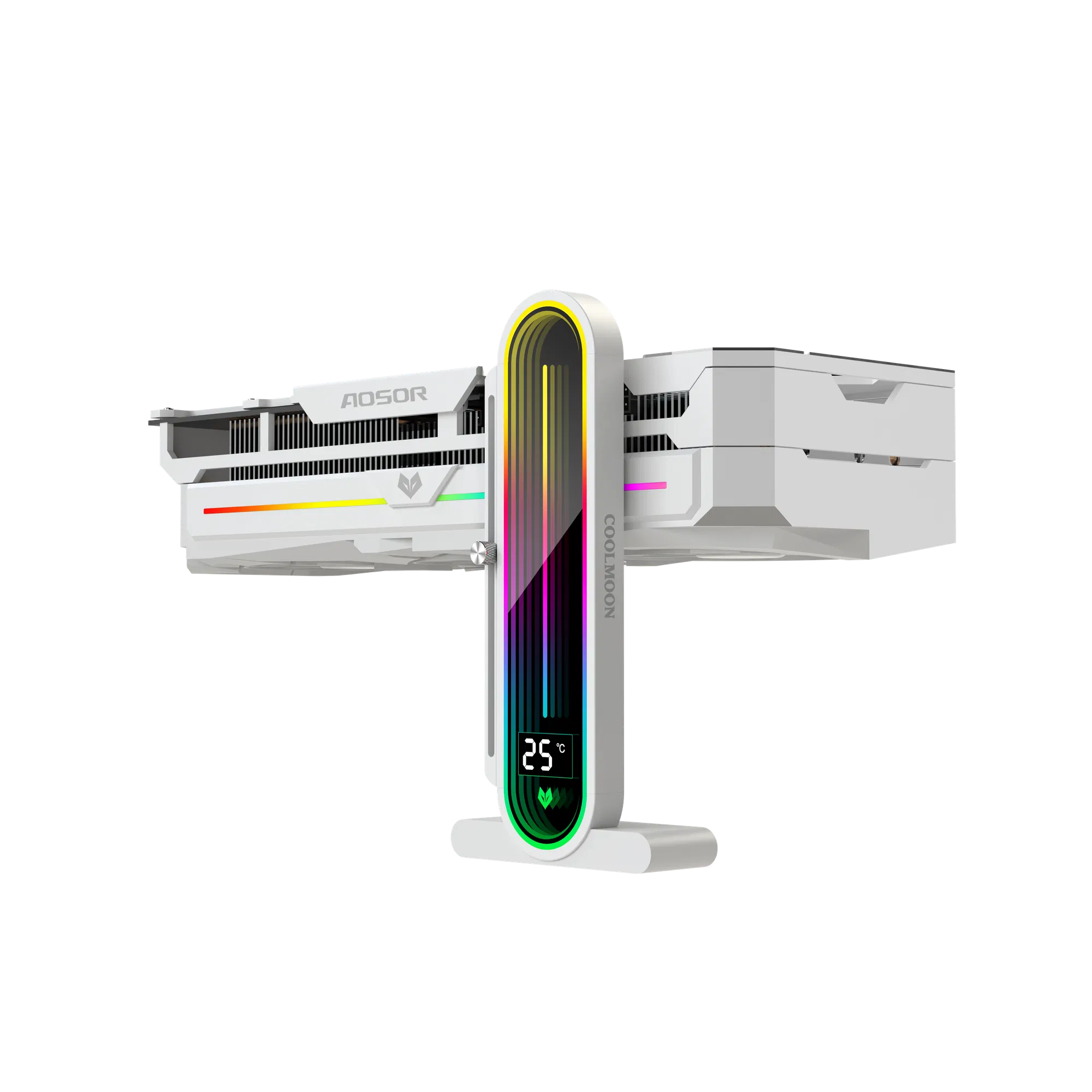CoolMoon GH3 Pro White Vertical GPU Holder With Adjustable Height ARGB Lens Lighting, Metal Anti-Sag Graphics Card Support Bracket, Tool-Free Universal PC Build Compatible