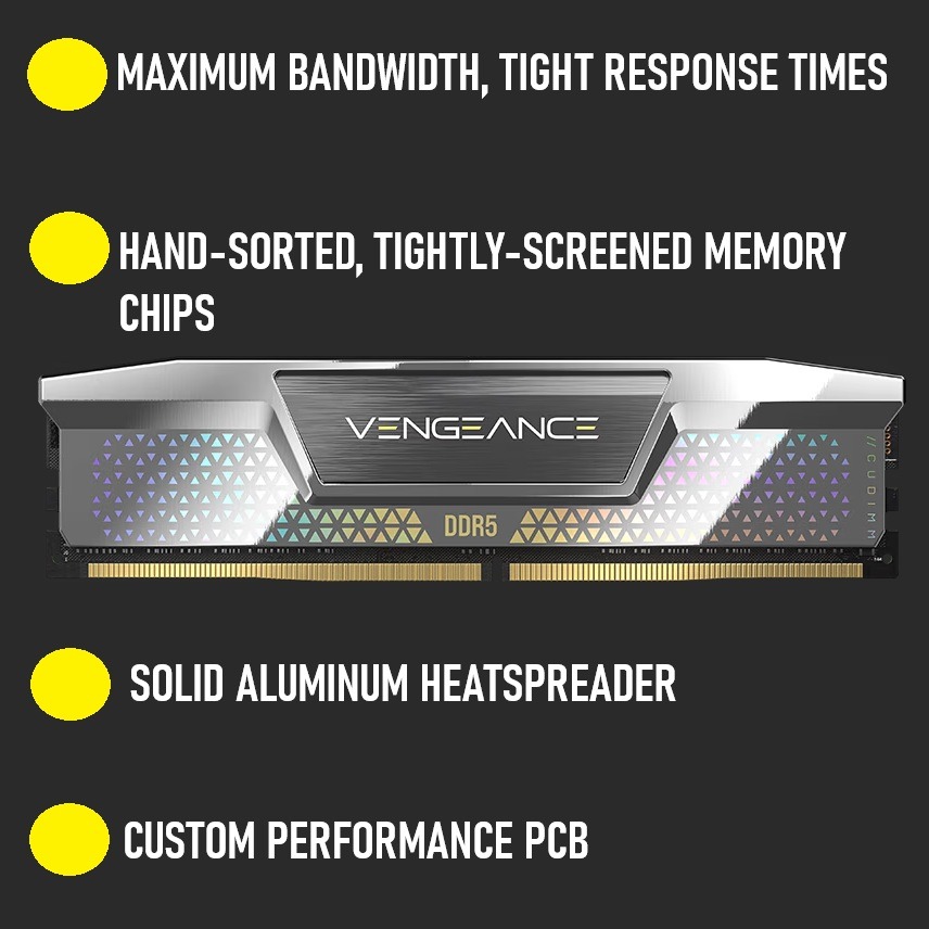 COSRAIR VENGEANCE® 48GB DDR5 CUDIMM RAM Kit ( 2x 24GB ) 7000MT/s , CL36 Low Latency, Aluminum Heatspreader, Intel XMP 3.0 Ready / Optimized for Intel® 800 Series  | Iridescent Chrome ~ CMKC96GX5M4X7000C36