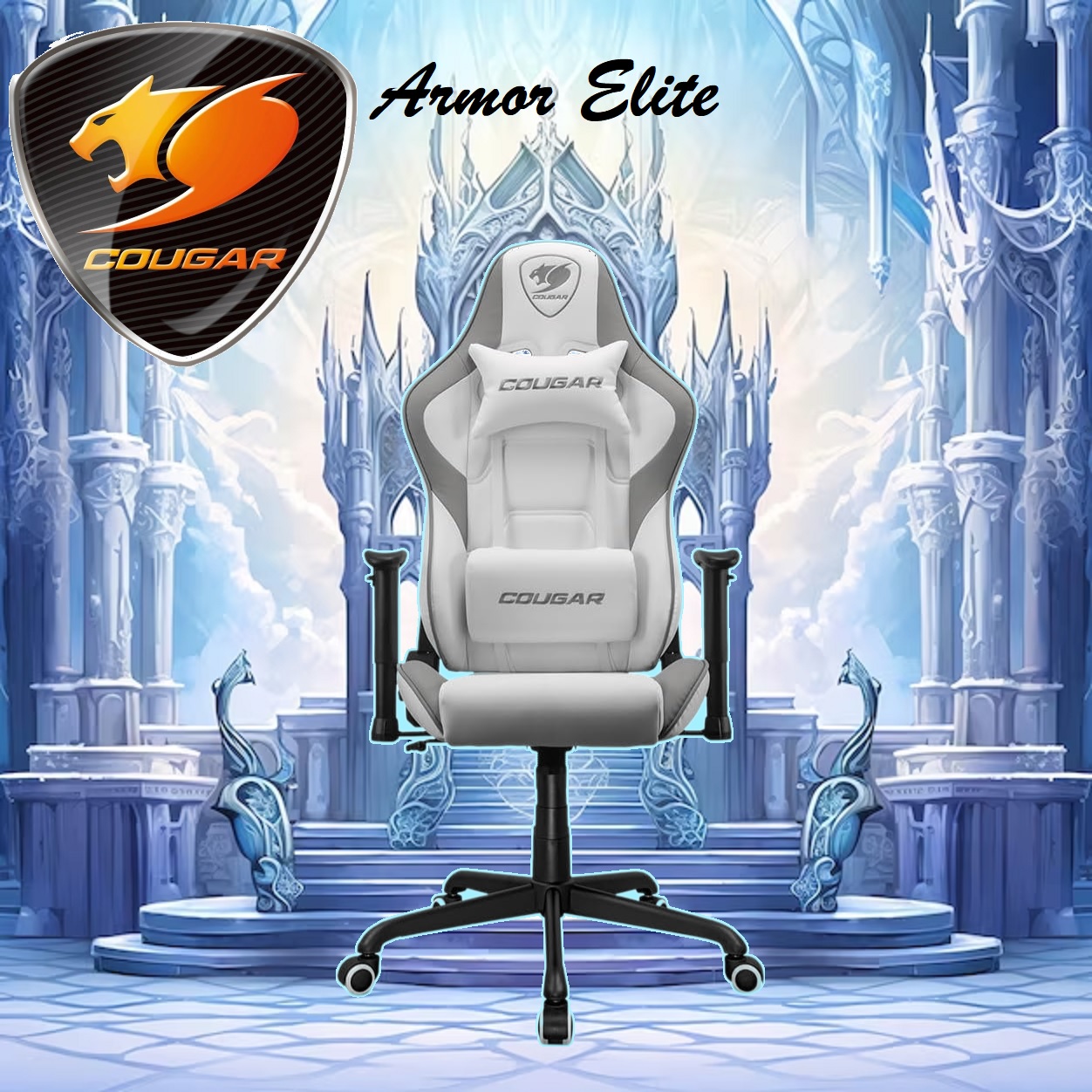 COUGAR Armor Elite White Gaming Chair – Premium PVC Leather – Head & Lumbar Pillow Included – Adjustable tilt tension – Recline up to 160º – 2D Adjustable Armrest – Full Ssteel Frame & Class 4 Gas Lift Cylinder | WHITE