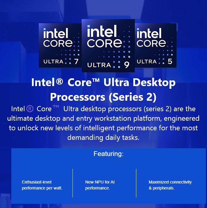 - Get ultra-efficient with Intel Core Ultra desktop processors that improve both performance and efficiency so your PC can run cooler, quieter, and quicker.