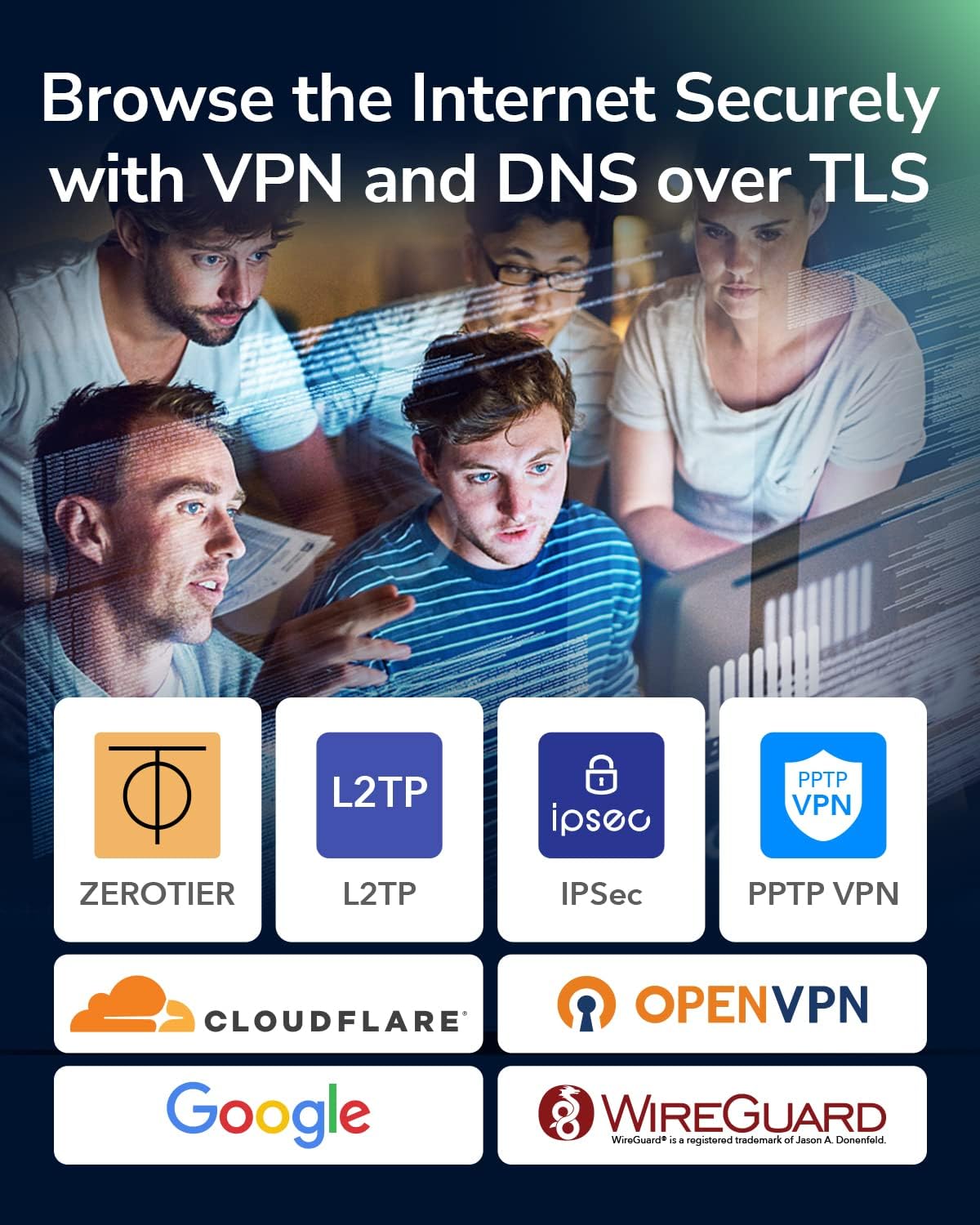 - Built-In VPN Server And Client : Supports OpenVPN, WireGuard, IPSec, PPTP, L2TP, and Zerotier for secure remote access and encrypted traffic