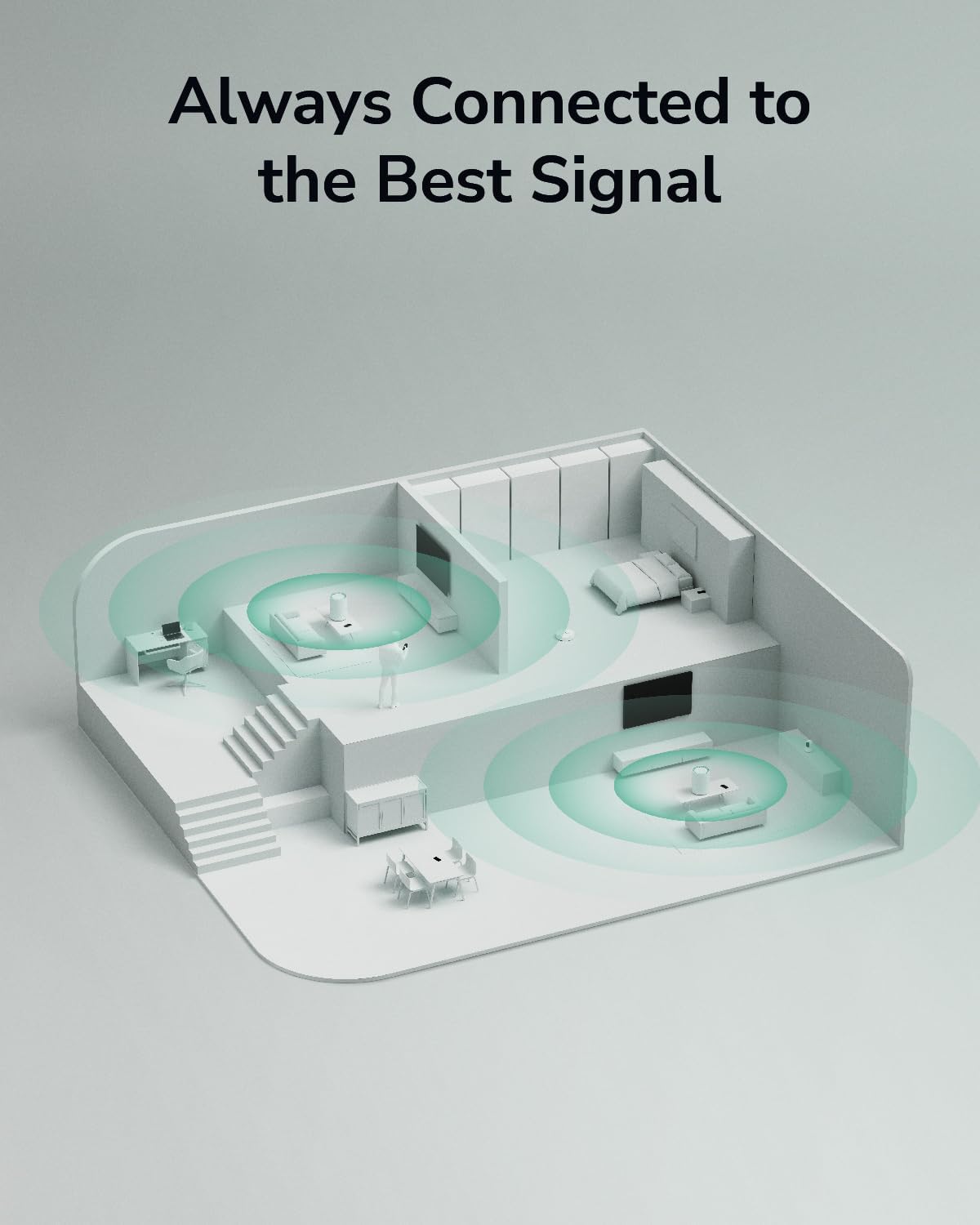 Delivers faster speeds and higher efficiency with 1201 Mbps on 5GHz and 300 Mbps on 2.4GHz, perfect for 4K streaming, gaming, and smart homes. - Whole-Home Mesh Coverage