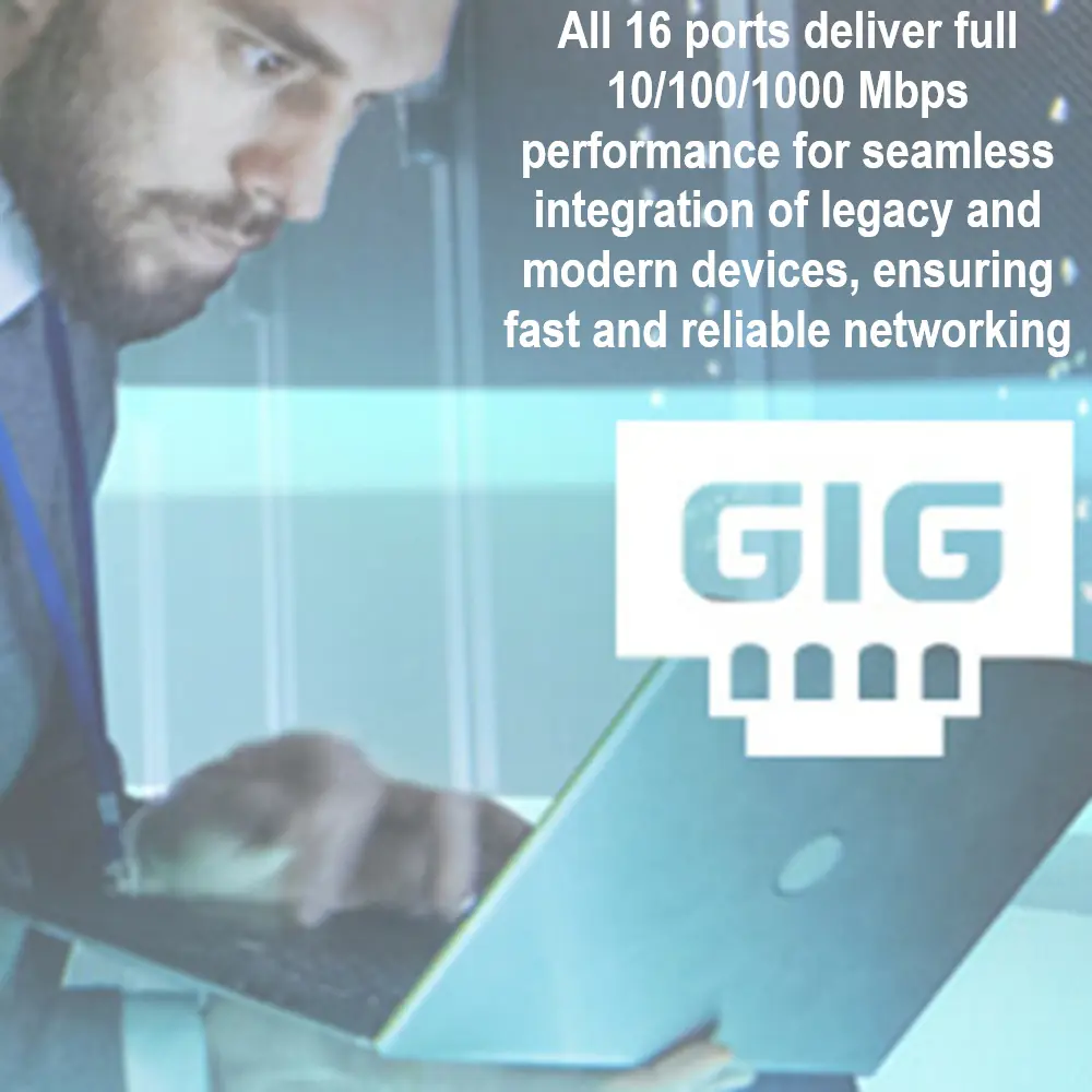 - High-Speed Gigabit Connectivity – All 16 ports deliver full 10/100/1000 Mbps performance for seamless integration of legacy and modern devices, ensuring fast and reliable networking.