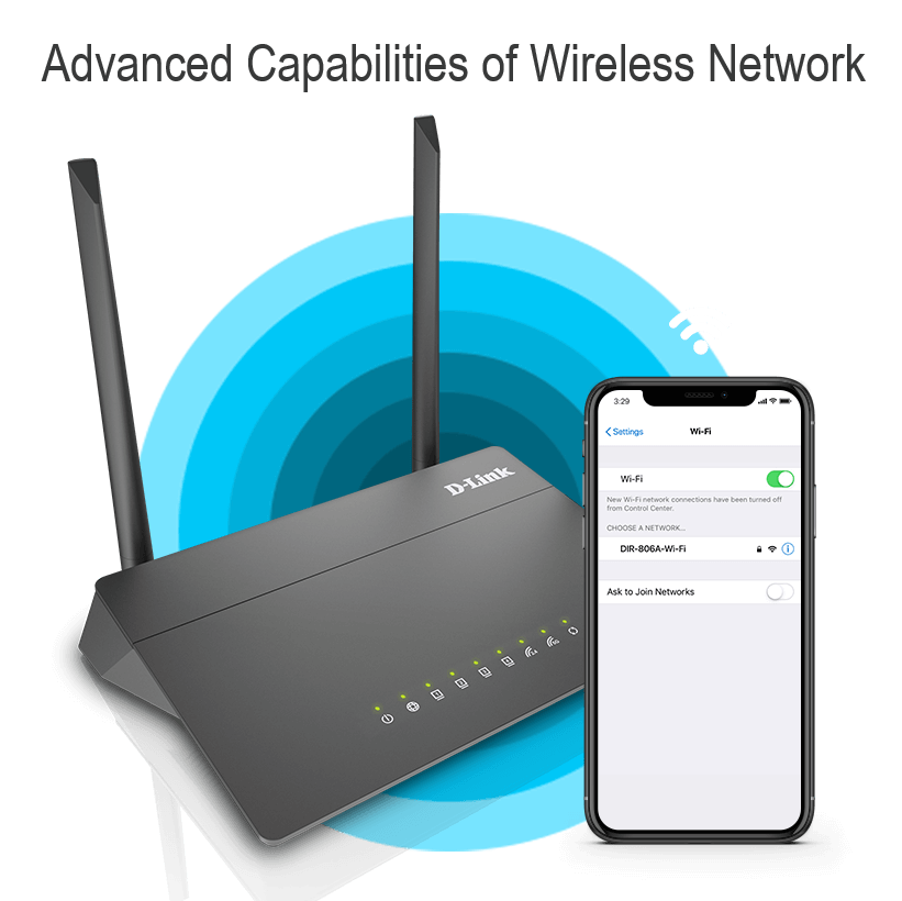 D-LINK DIR-806A AC750 Wi-Fi Router ; Dual Band 5GHz & 2.4GHz , 802.11a/b/g/n/ac compatible ; Secure Wireless Connection WEP, WPA/WPA2, MAC ; Guest Wi-Fi Network ; Easy Configuration and Update | DIR-806A