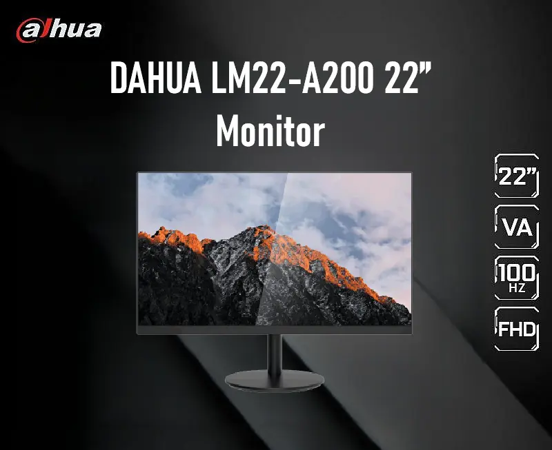 DAHUA LM22-A200 22” Monitor – FHD 1920×1080 VA Panel, 100Hz Refresh Rate, 5ms Response, HDMI & VGA Input, Ultra-Narrow Bezel, Wall Mountable