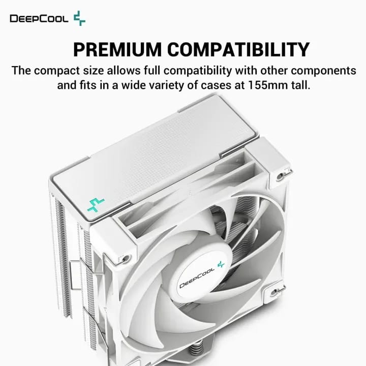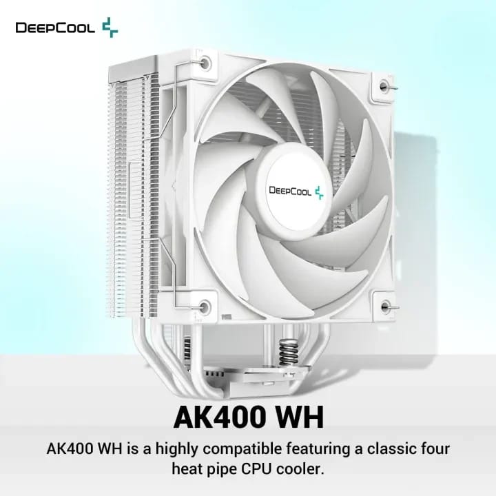 - Premium Cooling in White: The DeepCool AK400 WH is a powerhouse wrapped in a sleek white design. Equipped with a four-heat pipe tower layout and unique matrix fin configuration, this cooler blends high compatibility with a stunning, clean aesthetic.
