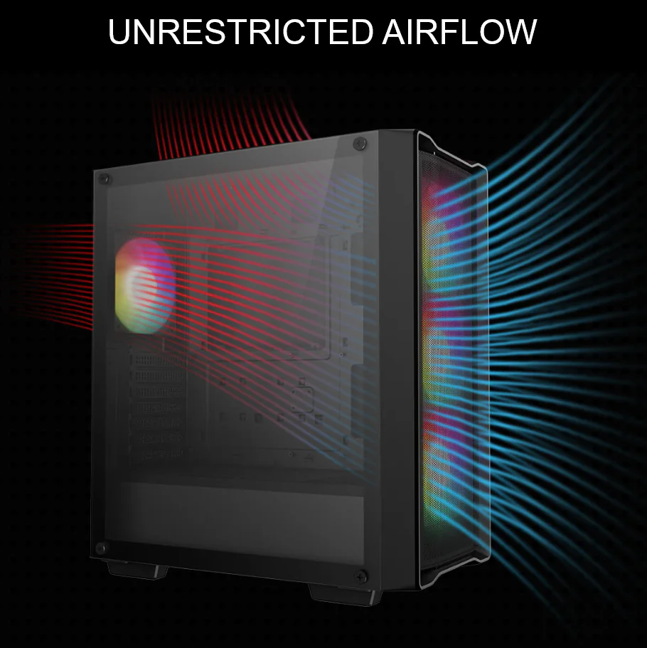 - Tempered Glass Side Panel: Showcase your components in style through a durable, full-sized glass window.