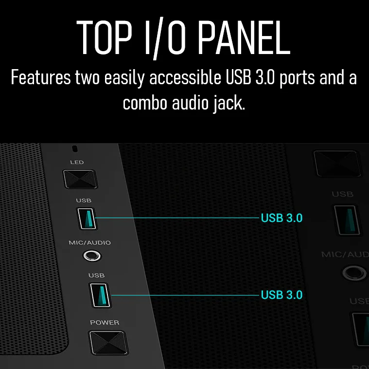 - Quick Access Top I/O: Includes 2x USB 3.0 ports and a combo audio jack right where you need them.