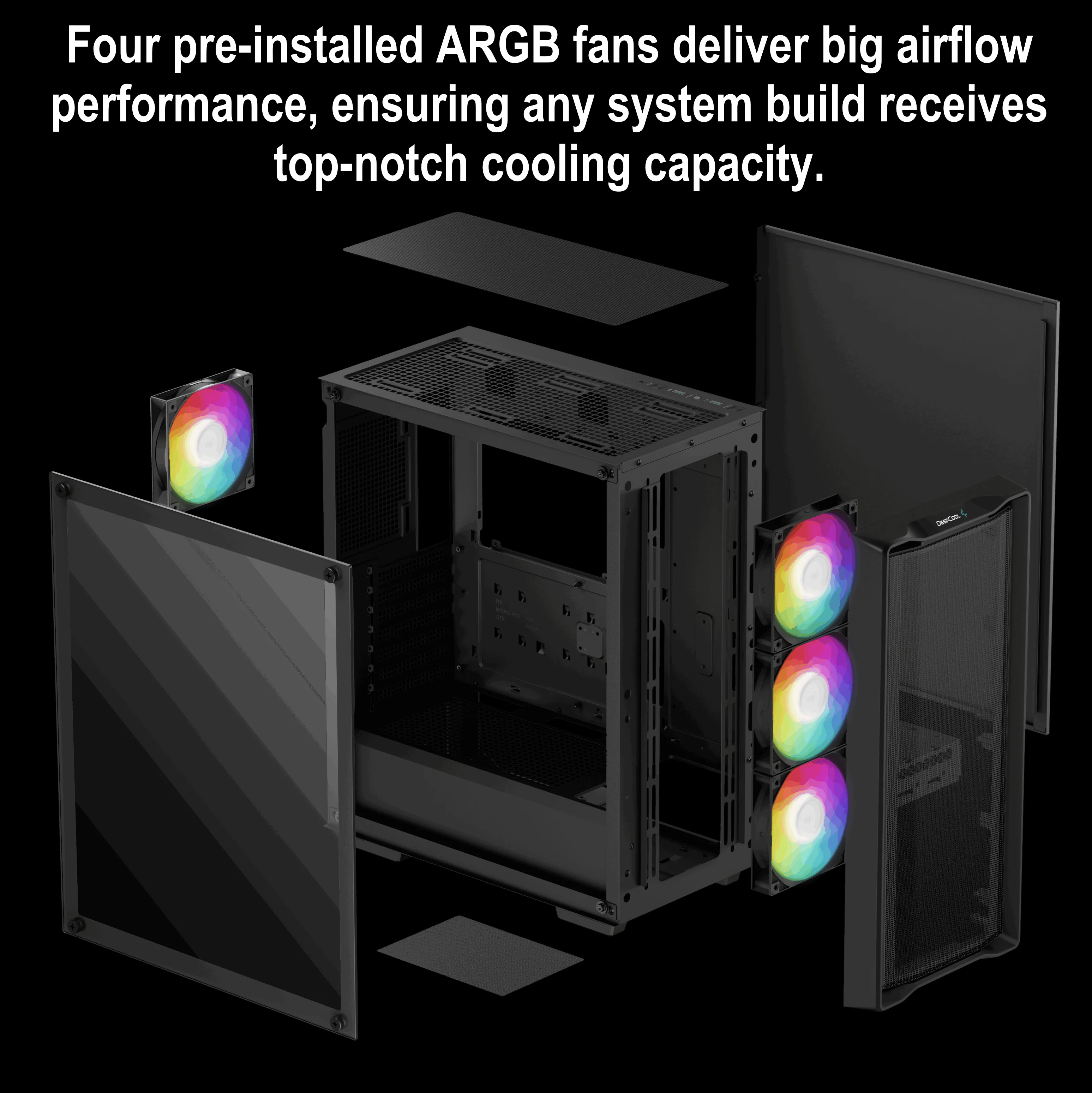 | Pre-Installed Fans | Front: 3×120mm ARGB, Rear: 1×120mm ARGB |