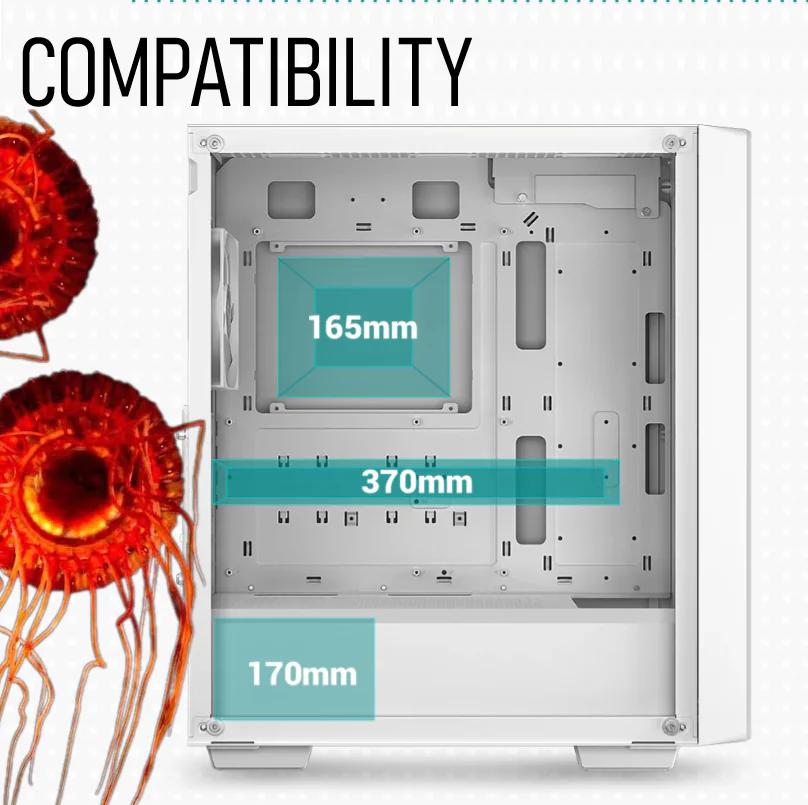 - High Compatibility: Fits ATX motherboards, 165mm CPU air coolers, 370mm long GPUs, and PSUs up to 170mm.