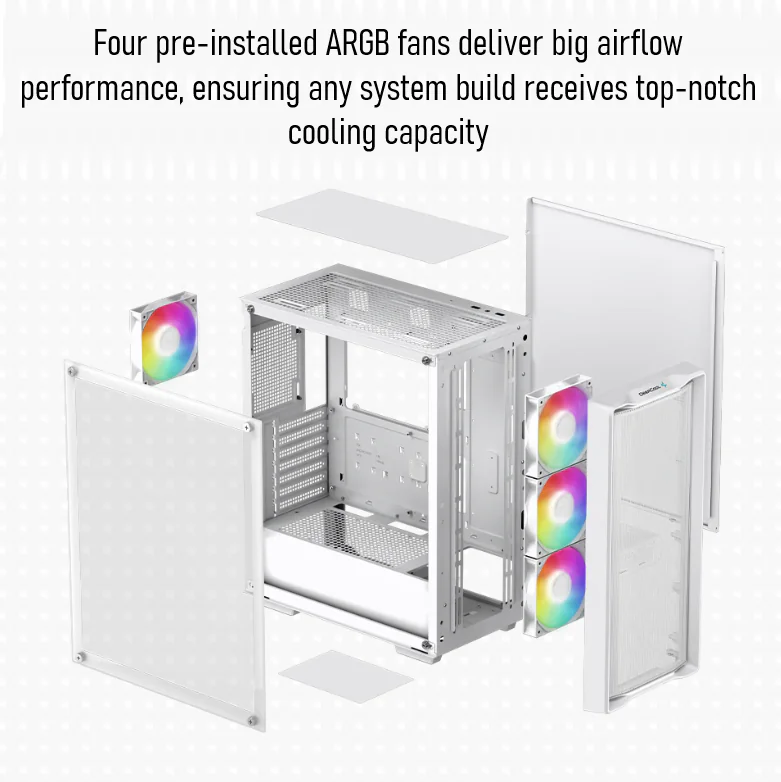 - Four Pre-Installed ARGB Fans: Start your build with serious airflow and instant RGB flair—no extra purchases needed.