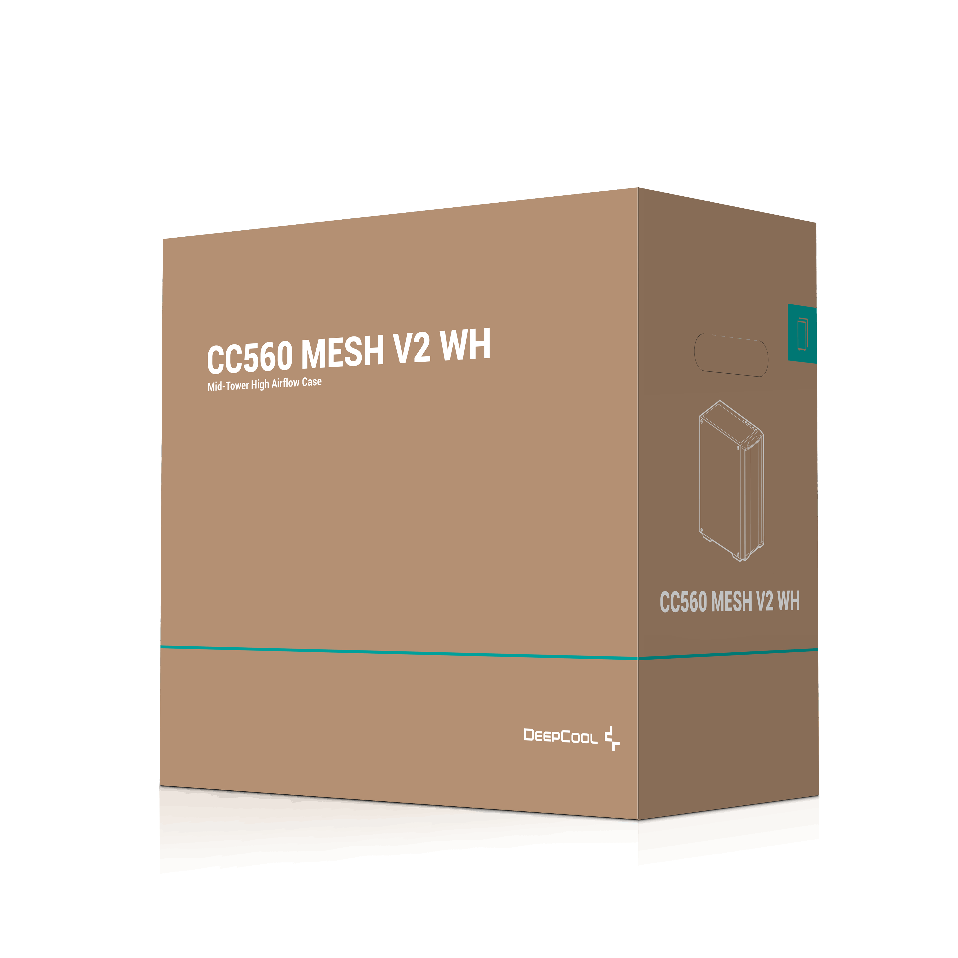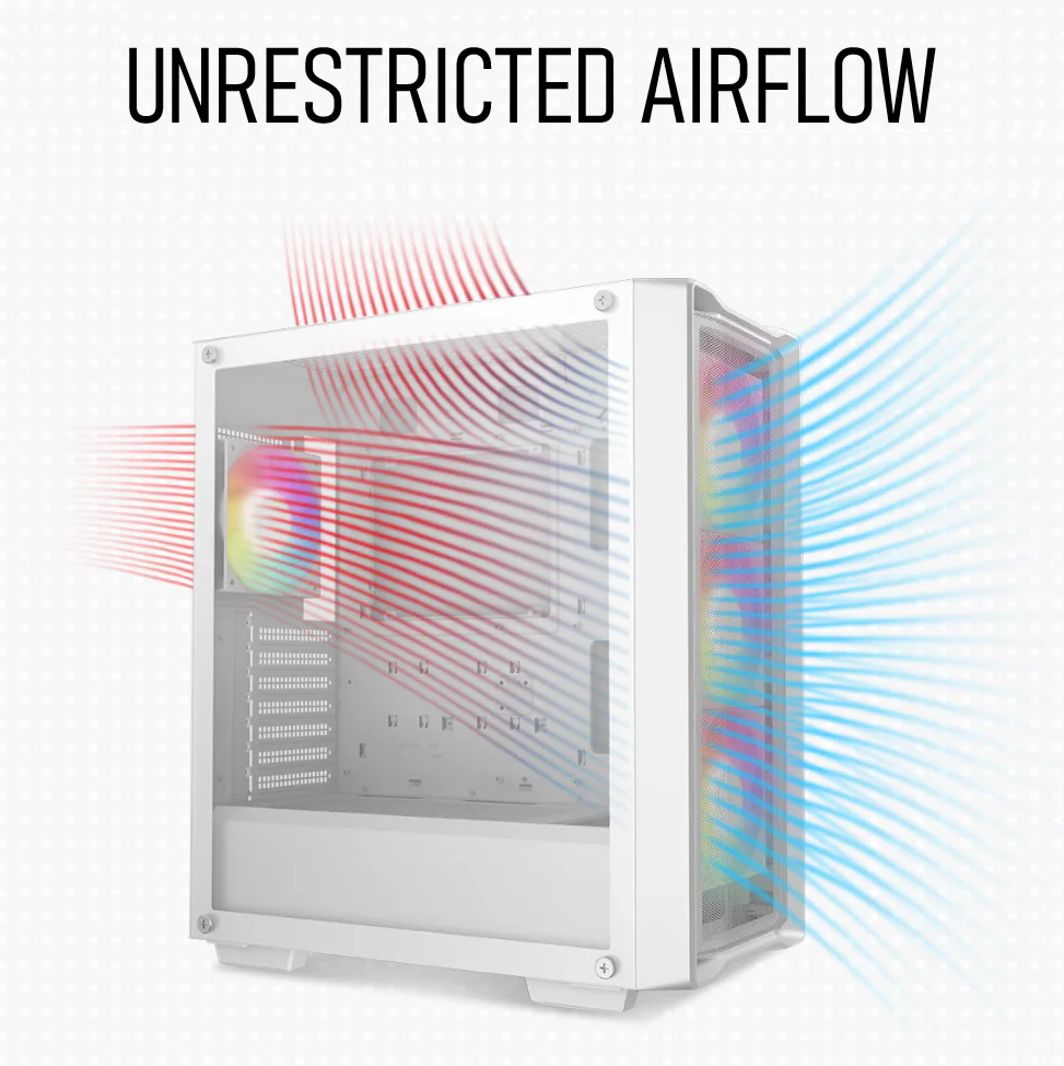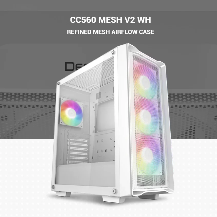 DeepCool CC560 Mesh V2 WH ATX Mid-Tower Case With 4 ARGB Fans, Tempered Glass Panel, Fine Mesh Front, Dual 120mm Fan Mounts on PSU Shroud , 360mm Radiator Support, GPU Up To 370mm, Dual USB 3.0 | WHITE