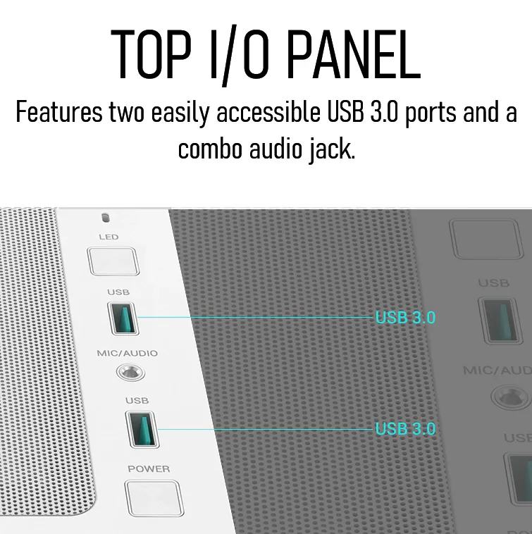 - Quick Access Top I/O: Includes 2x USB 3.0 ports and a combo audio jack right where you need them.