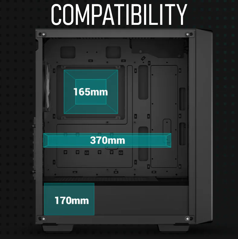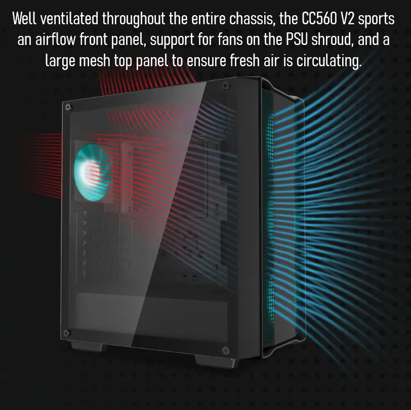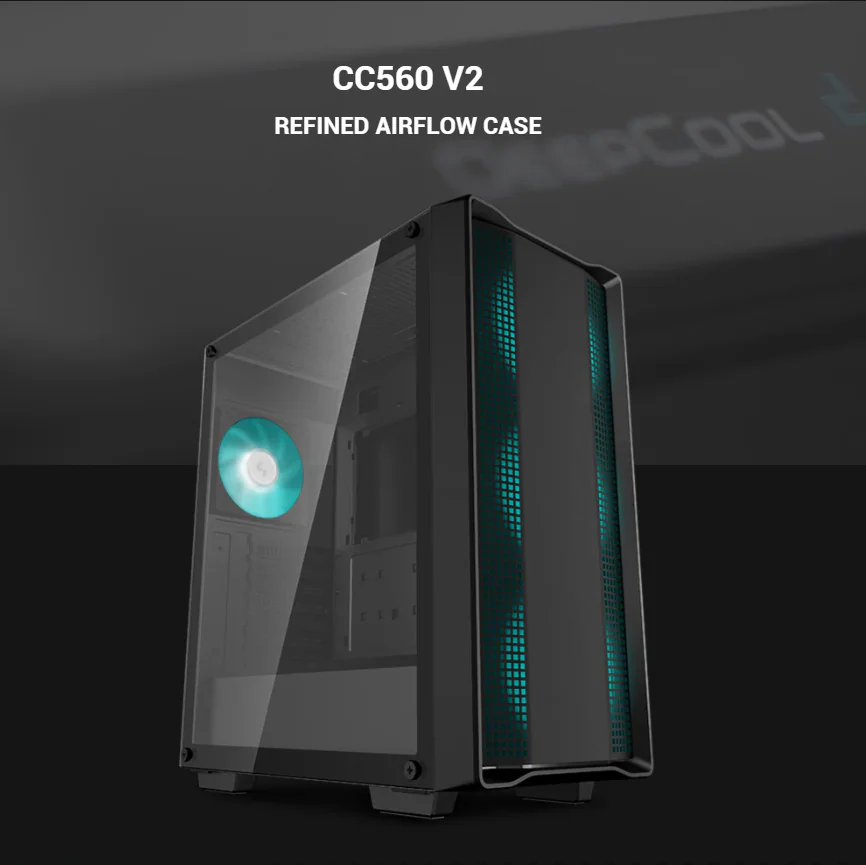 DeepCool CC560 V2 Mid-Tower ATX Case With 4 Pre-Installed LED Fans, Tempered Glass Side Panel, 360mm Radiator Support, PSU Shroud Fans, USB 3.0, Up to E-ATX Motherboards , 370mm GPUs, 165mm CPU Coolers, 170mm PSU | BLACK
