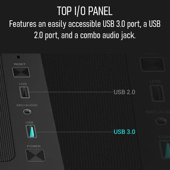 Includes USB 3.0, USB 2.0, and combo audio jack for fast front-panel connectivity.