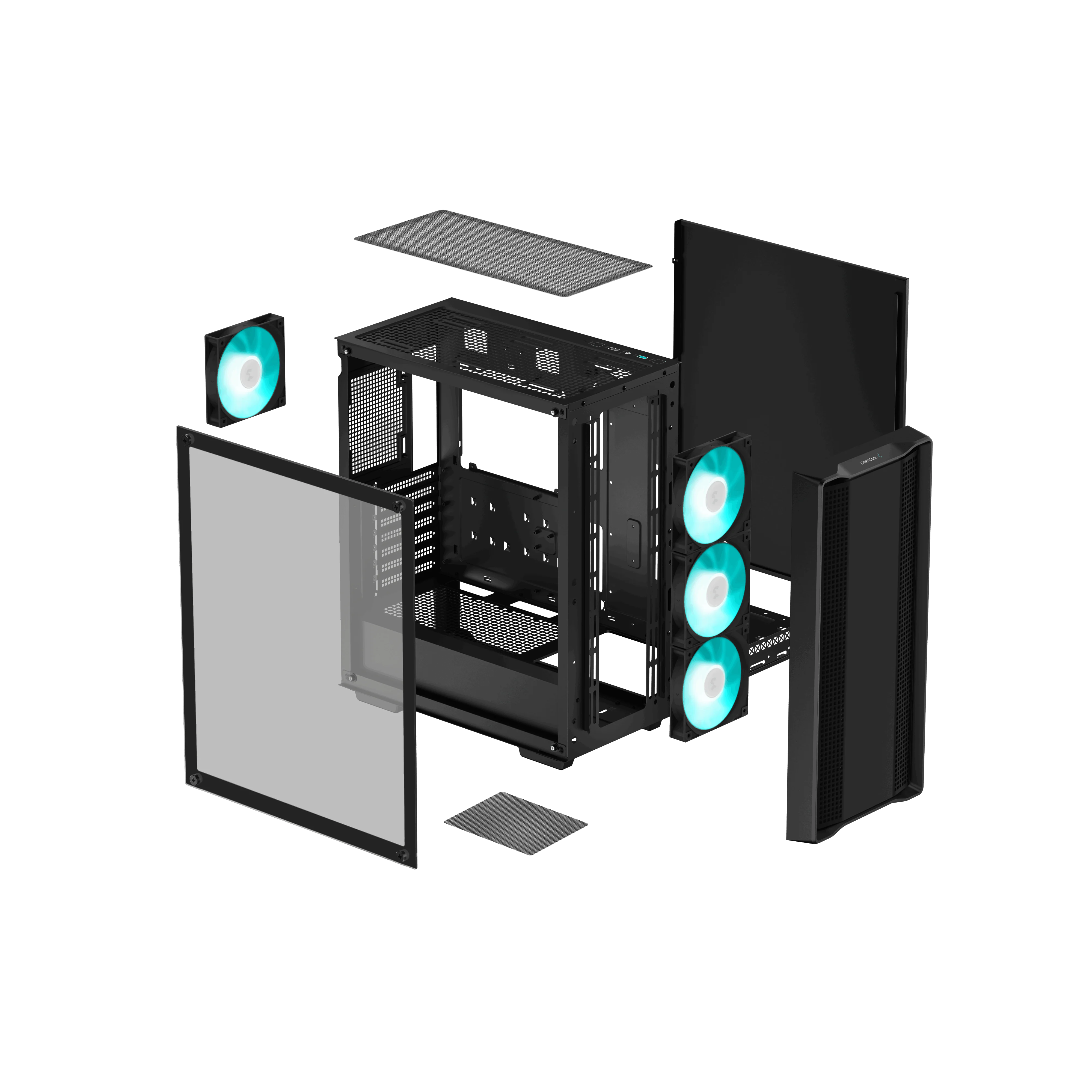 DeepCool CC560 V2 Mid-Tower ATX Case With 4 Pre-Installed LED Fans, Tempered Glass Side Panel, 360mm Radiator Support, PSU Shroud Fans, USB 3.0, Up to E-ATX Motherboards , 370mm GPUs, 165mm CPU Coolers, 170mm PSU | BLACK