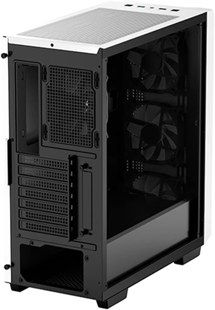 DEEPCOOL CC560 White ATX Mid Tower Tempered Glass.  Support Mini-ITX / mATX / ATX, 4x Pre installed 120mm LED Fans. CPU Cooler Upto 163mm, GPU Upto 370mm, 360mm Rad Supported, 7X PCI Slot. Front I/O: 2X USB, HD Audio