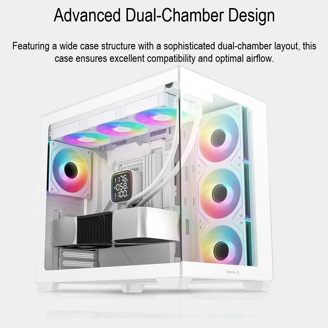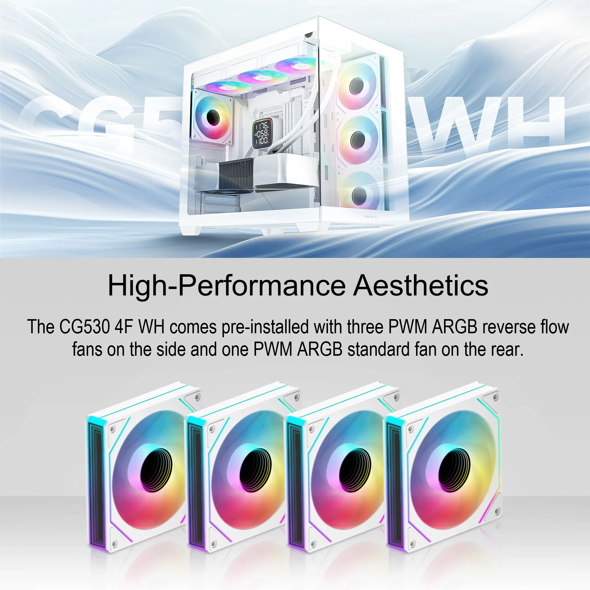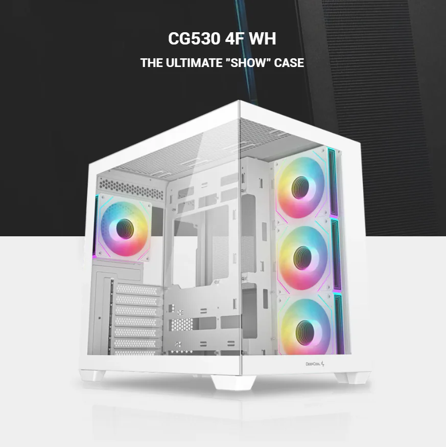 DeepCool CG530 4F Dual-Chamber Mid-Tower ATX Case with 270° Glass View, 4 ARGB Fans, 360mm Radiator Support, USB-C, 410mm GPU Support, Hidden Cabling, 7 Expansion Slots | WHITE