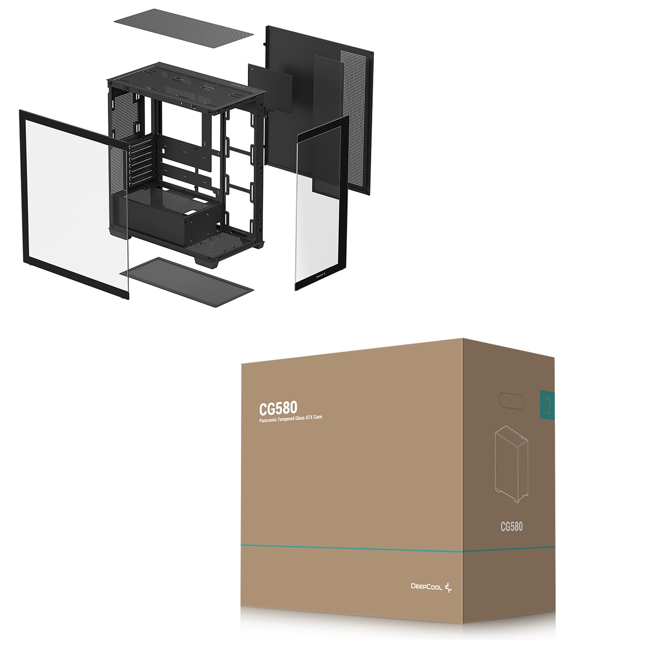 DeepCool CG580 Gaming ATX PC Case Panoramic View Tempered Glass – Supports ITX , Micro-ATX , ATX Motherboards – Fits 410mm GPUs – 7 Expansion Slots – Front I/O Ports USB3.0×2, Audio×1, Power, Reset | BLACK R-CG580-BKNDA0-G-1