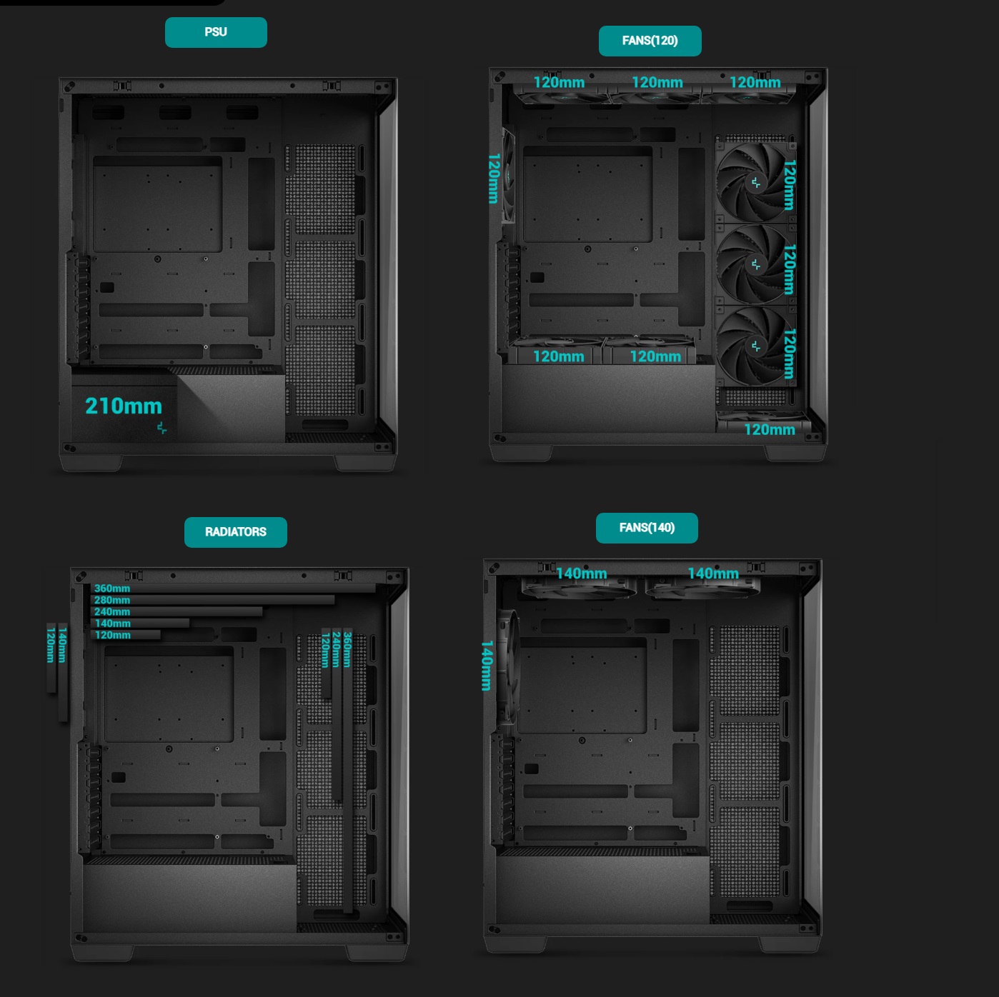 - Fan Capacity: Up to 9 x 120mm fans for max airflow.
