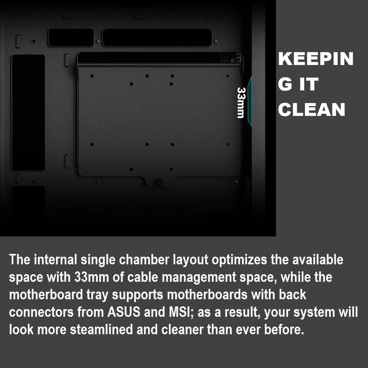 - Optimized Layout: Internal single chamber design with 33mm cable management space for a streamlined look.