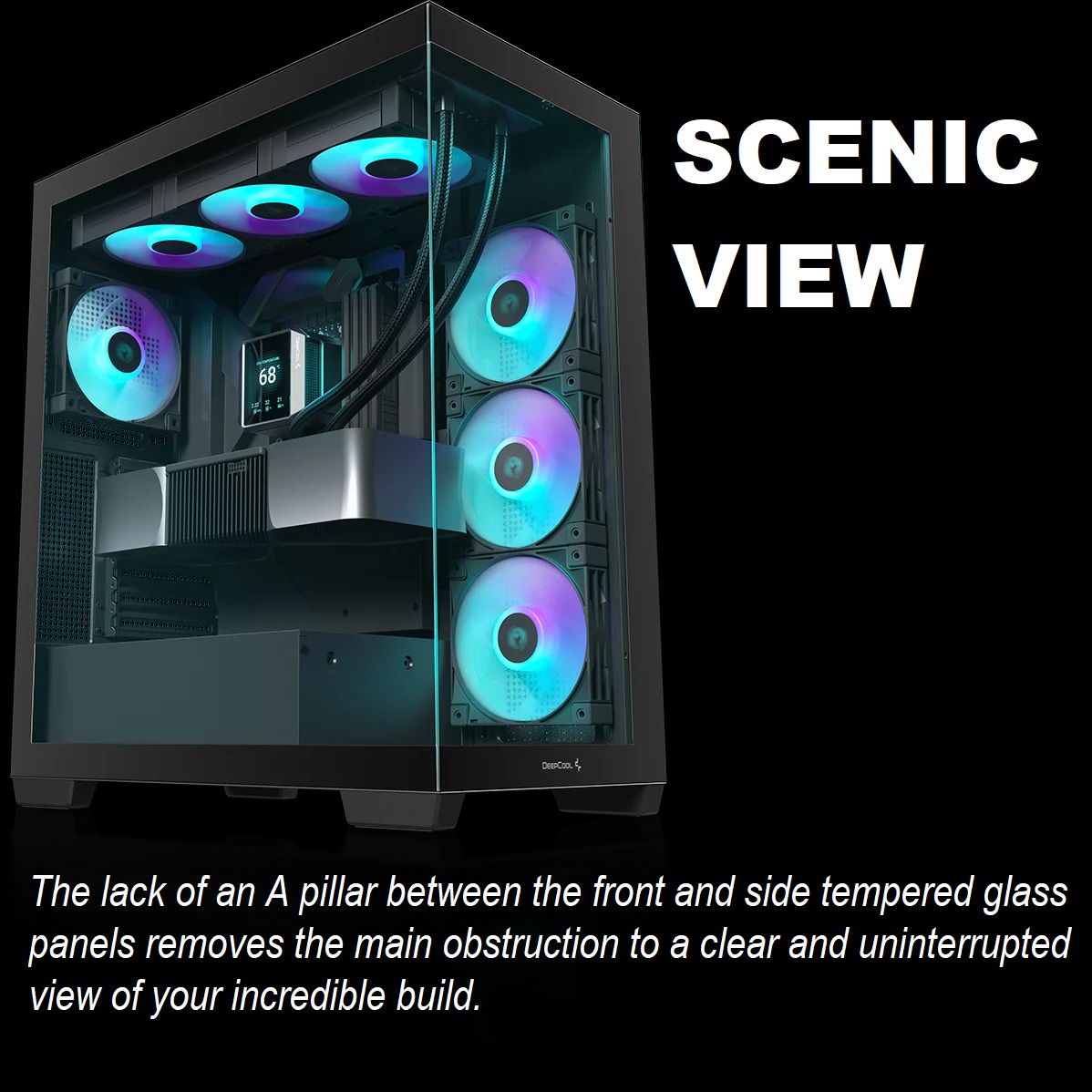 - A-Pillar Free: Enjoy an unobstructed view of your sick build thanks to the lack of an A pillar between the front and side tempered glass panels.