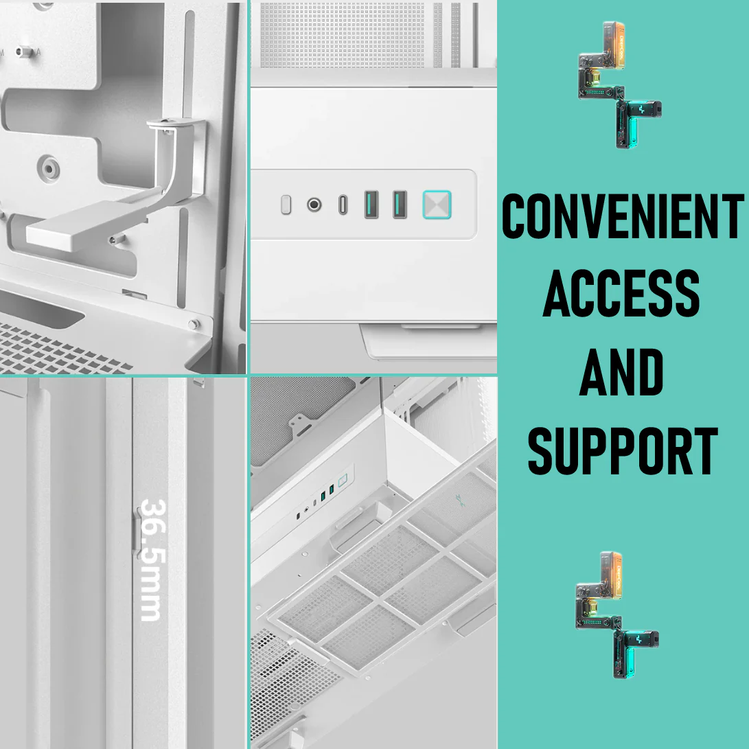 - DIY-Ready Design: Switch out the rear semi-glass panel for a mesh one and fan bracket to unlock better airflow and performance.