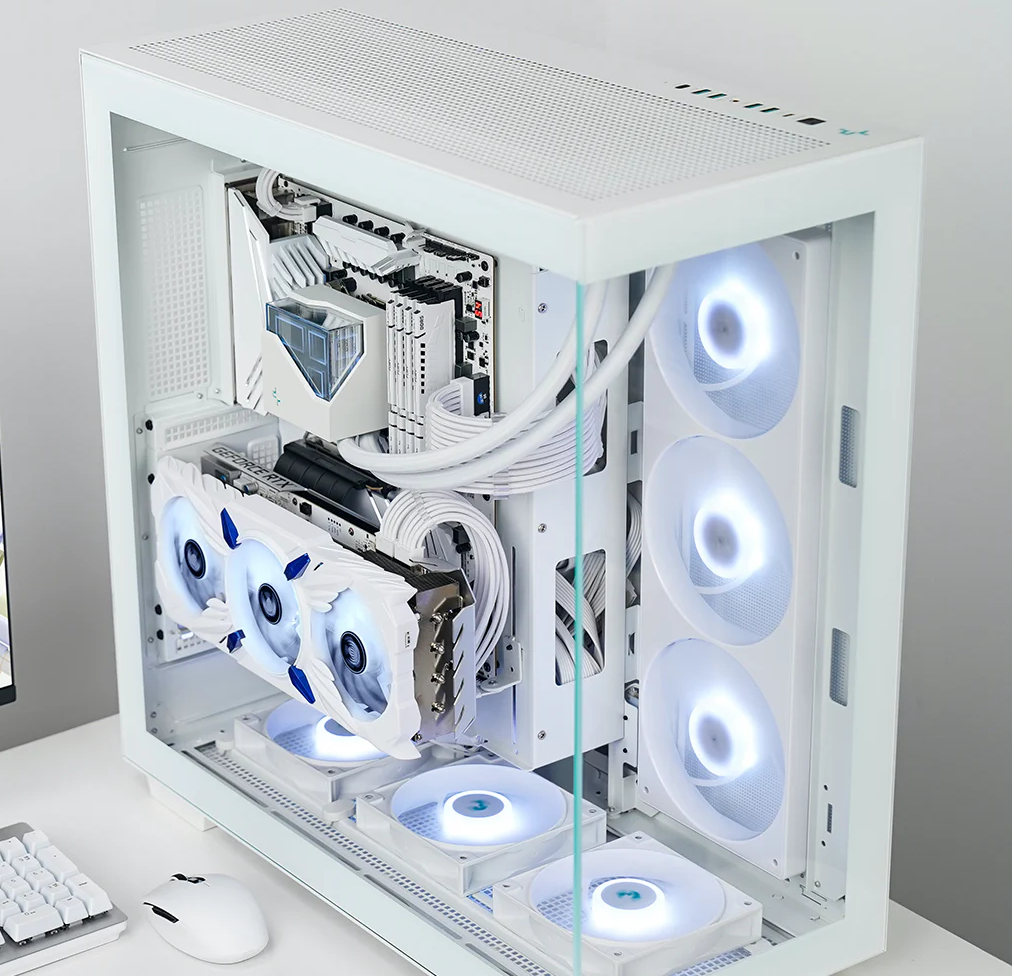 Deepcool CH780 Full Tower Gaming Case , up to E-ATX support ,PANORAMIC GLASS-DUAL , 3x140mm ARGB fans into a single 420mm unit – WHITE