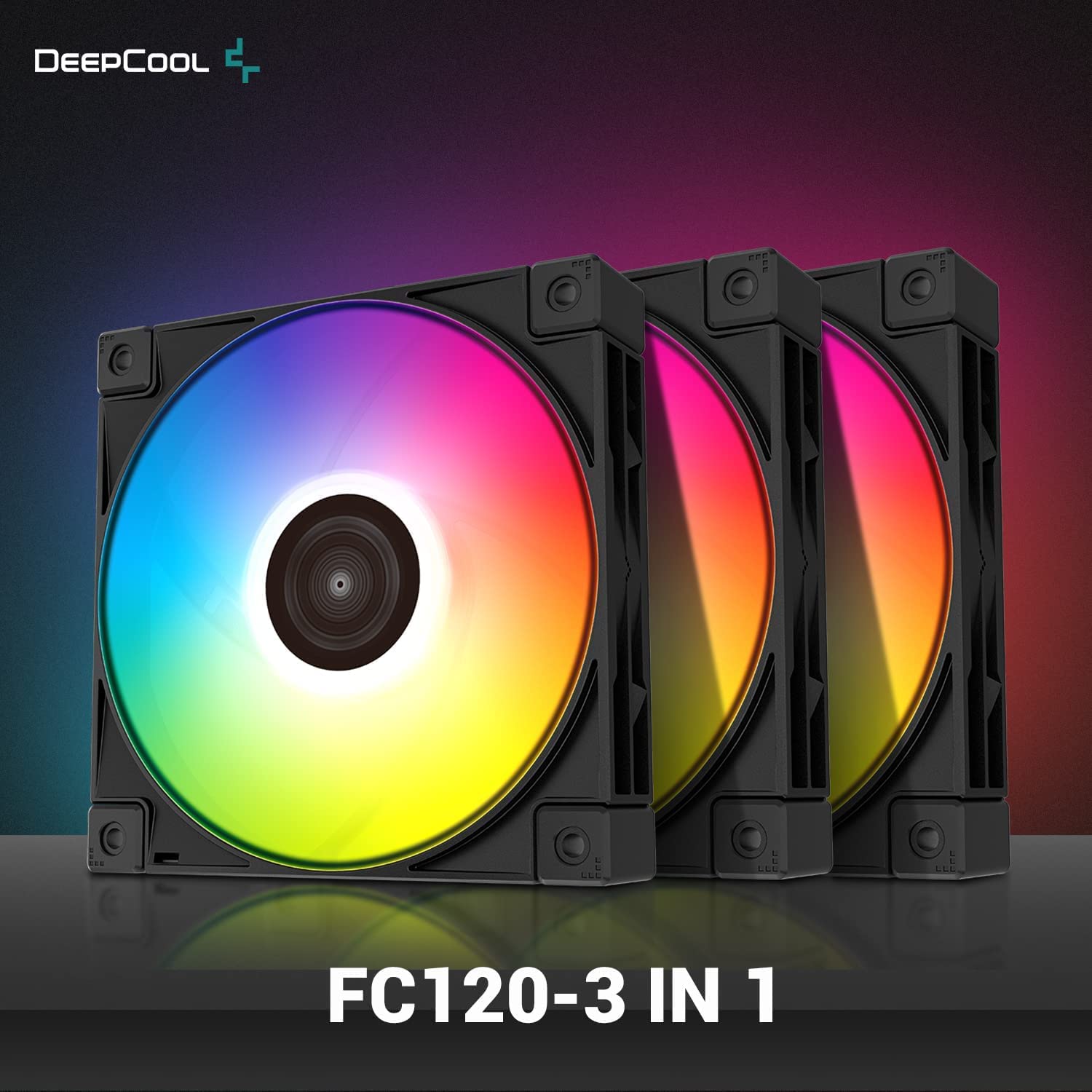 DeepCool FC120 3IN1 Performance 120mm ARGB LED PWM Fan, Daisy-Chain Interconnect Cable, Black, Triple Pack- BLACK
