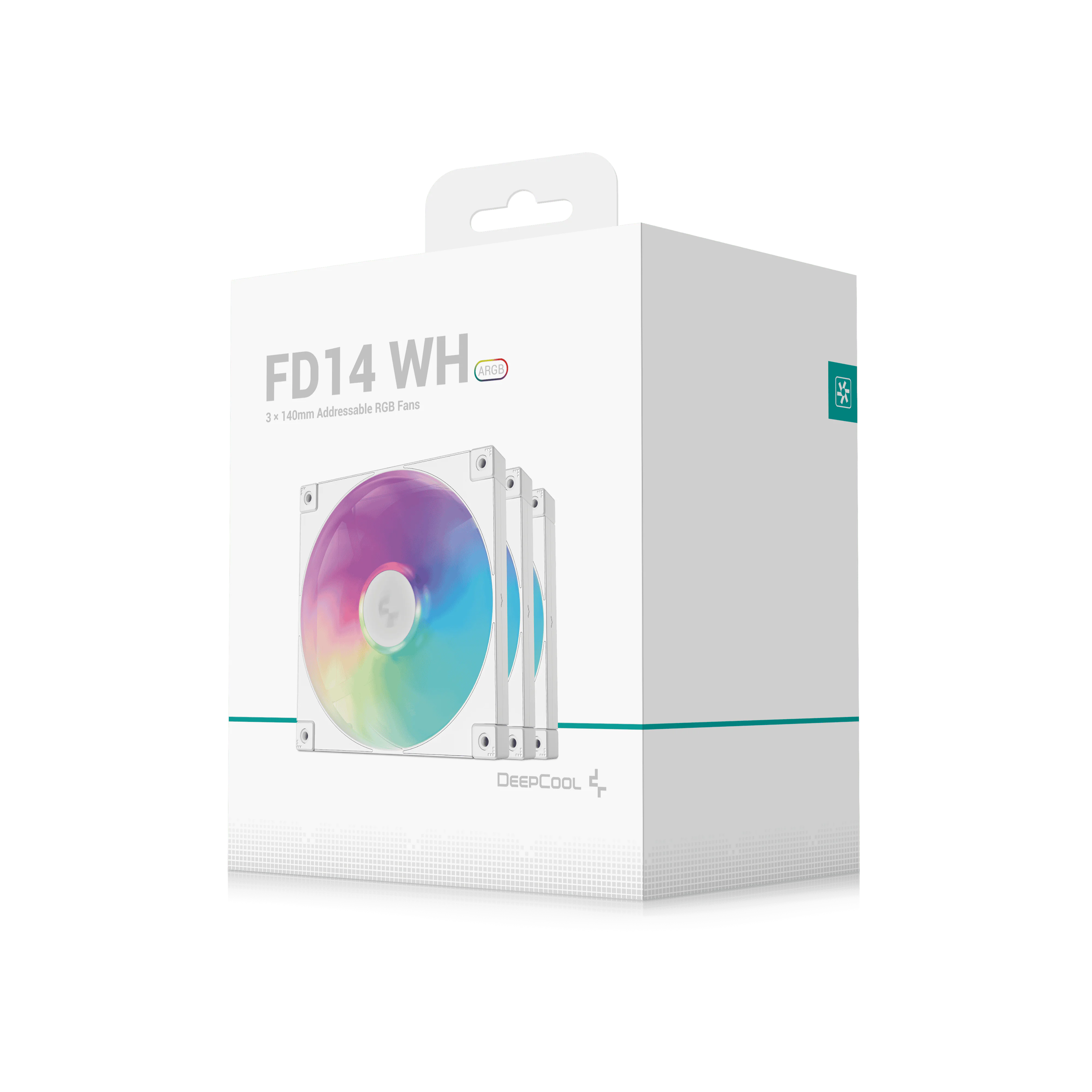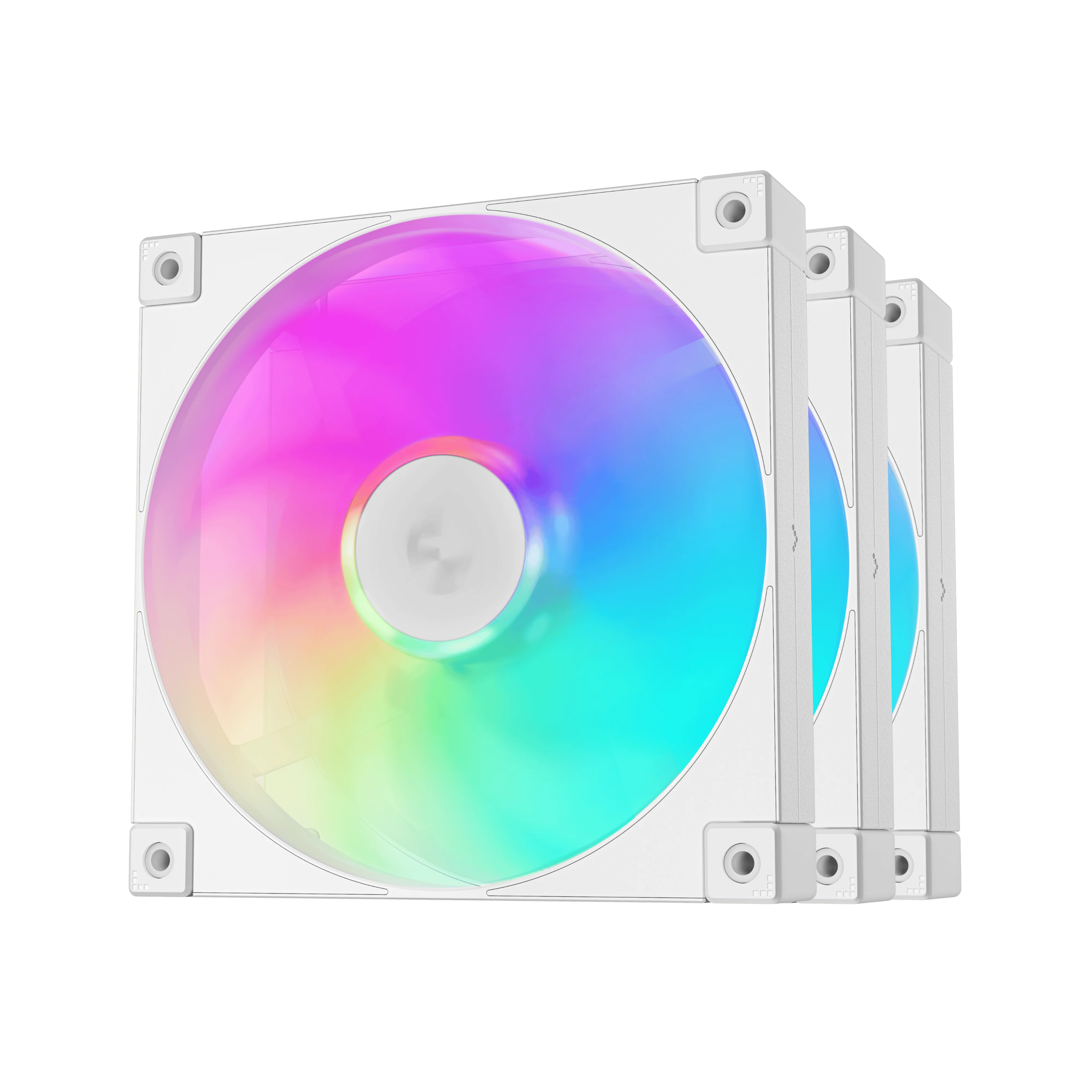 DeepCool FD12 ARGB 120mm Fan 3-Pack with Daisy Chain 8-Pin Cable, PWM Control, 63.6 CFM Airflow, Gen 2 Addressable RGB, Quiet Hydraulic Bearings | WHITE