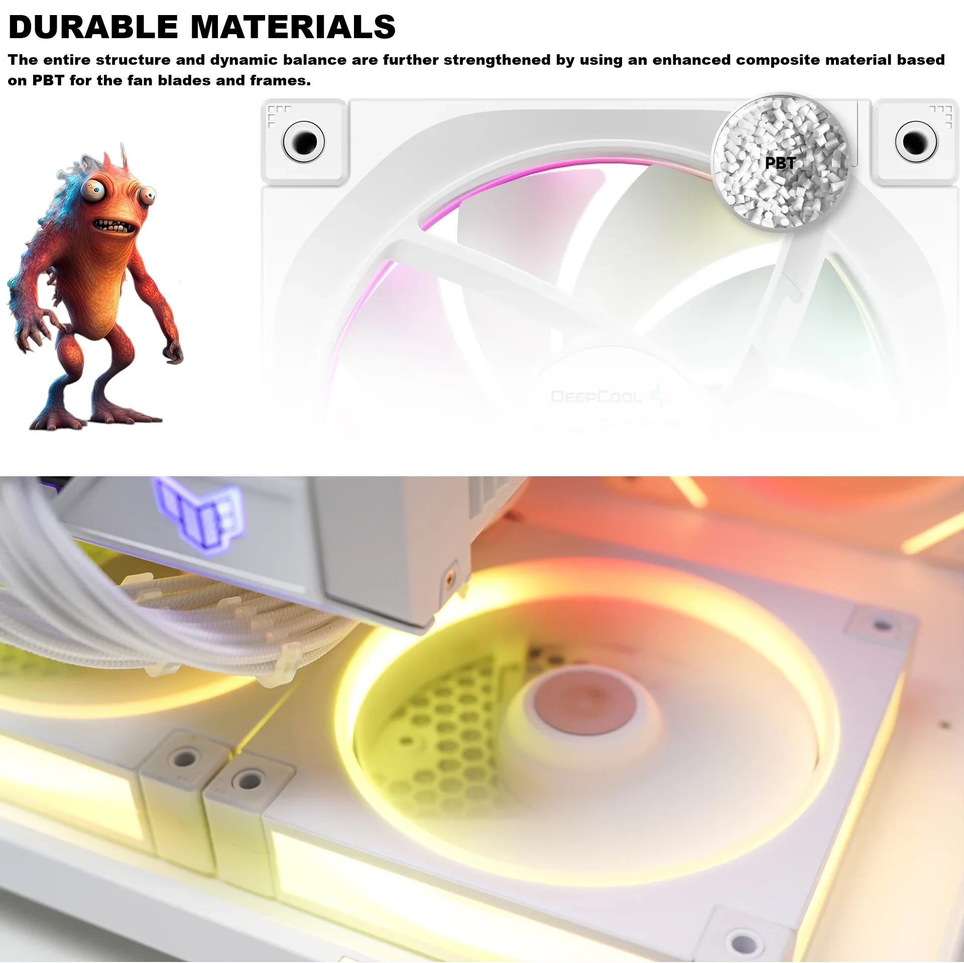 🧱 BUILT TO LAST : Made from upgraded PBT composite material, these fans are tougher, more stable, and less likely to warp over time. Dynamic balance? Nailed it.
