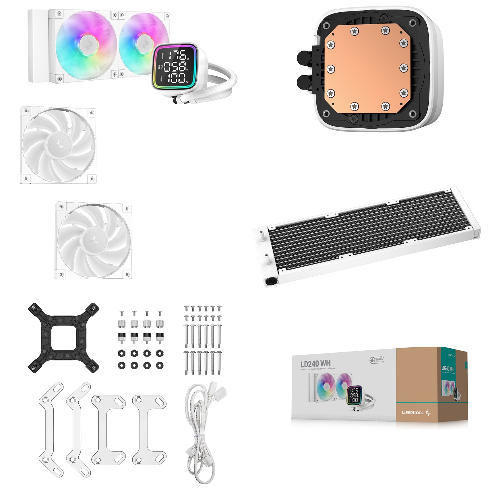 DeepCool LD240 WH ARGB AIO WHITE LIQUID COOLER : Large Display with ARGB Halos for CPU Status , 2x ARGB PWM Fans , 5th Generation High-Performance Pump up to 3400 RPM , Pre-applied Thermal Paste | WHITE