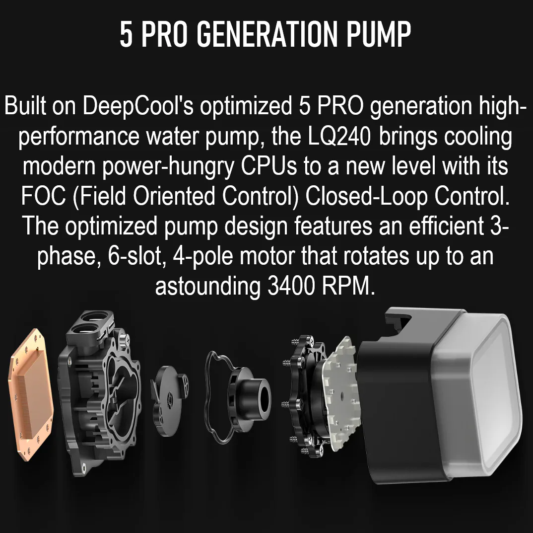 - Powerful Yet Quiet 5 Pro Pump: Reaching 3400 RPM, the advanced 5th-gen pump features a 3-phase, 4-pole motor with Field Oriented Control (FOC), delivering elite cooling performance.