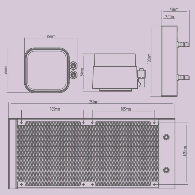 | LED Power | Pump: 2.4W / Fans: 2.1W (combined) |