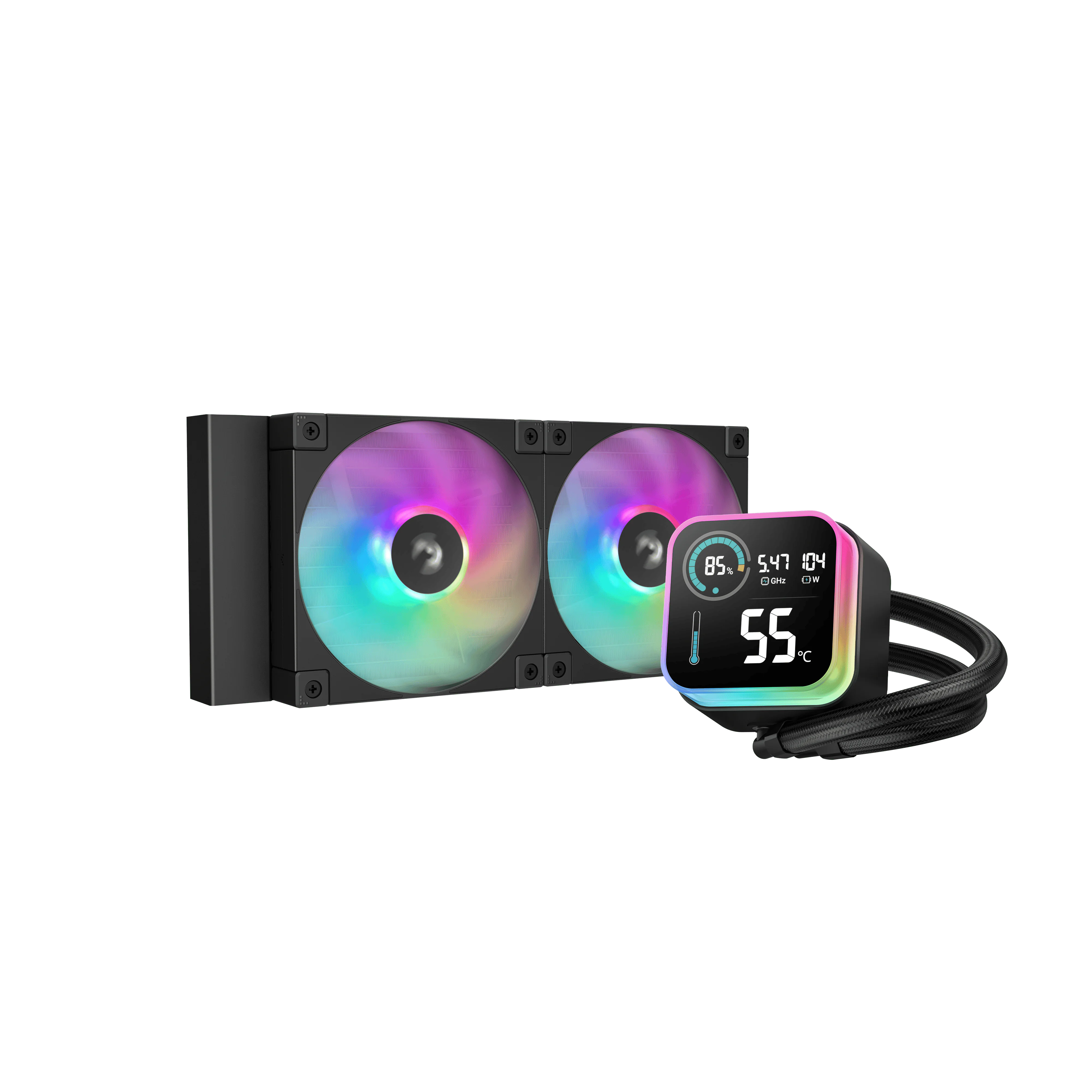 DeepCool LQ240 ARGB Liquid Cooler With Segment LCD Screen, 240mm Radiator, Dual FD12 Fans, 5 Pro Pump, Anti-Leak Tech, 3400 RPM, Intel/AMD Support | Black